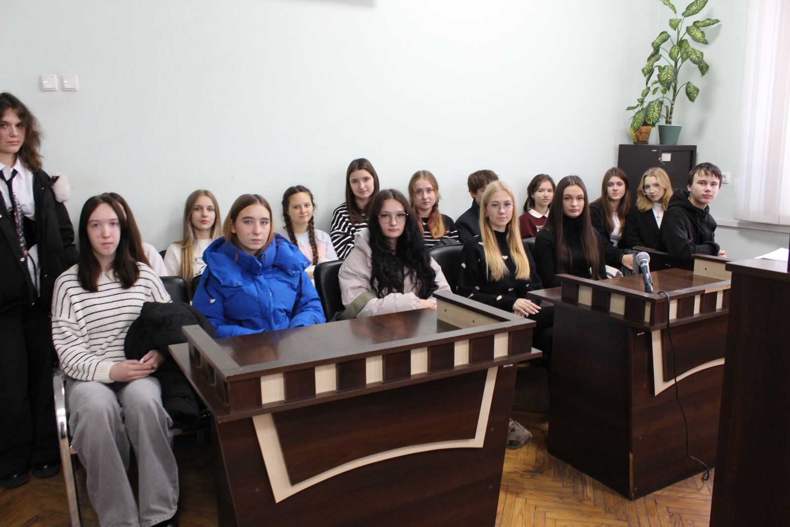 Під час відвідин зали, в якій слухаються справи і оголошуються судові вердикти, підлітки дізналися про правила проведення процесів, визначені законодавством вимоги до їх учасників. Особливу увагу в розмові приділили питанням забезпечення верховенства права, неупередженості в прийнятті рішень та дотримання етичних норм.