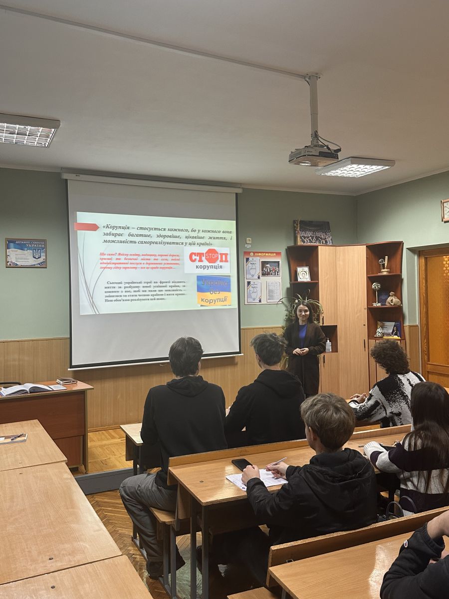 Про корупційні ризики і протидії говорили під час просвітницької зустрічі з другокурсниками комп’ютерного відділення нашого коледжу. Їх ознайомили з основними положеннями та поняттями антикорупційного законодавства України. Більше того - з існуючими механізмами повідомлення про корупційні правопорушення, шляхами подання звернень, доступними каналам комунікації та можливостями захисту заявників.