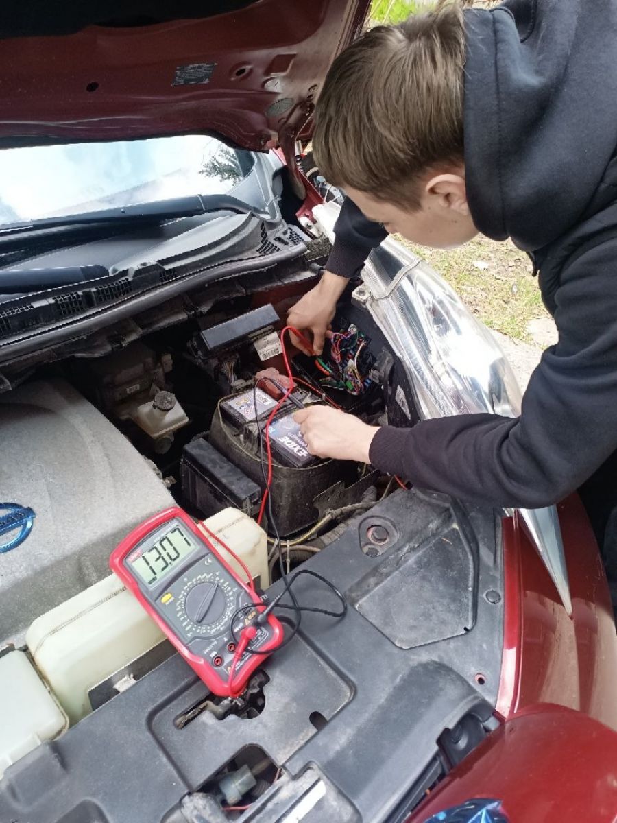 Студенти групи 3ЕА1 мали продемонструвати вміння використовувати коректно і за призначенням прилади для діагностики несправностей автівки. За навчальний тренажер був електрокар Nissan Leaf свого викладача Юрія Костюка!