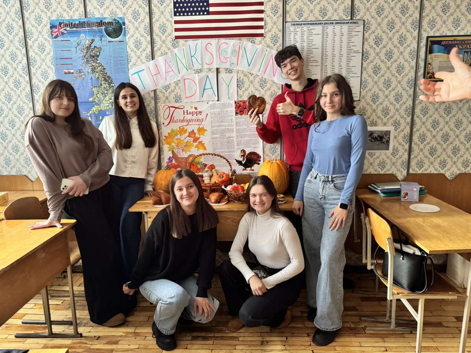 The contest "Turkey Charades," the so-called "Crocodile," where it was necessary to show with gestures a hidden English word in order for others to guess was the funniest. At the end of the holiday, a dance battle took place. Students recreated the movements of "Marshmallow Dance" and the traditional dance "Gobble Dance," which were shown in English on the TV screen. At the end of the dance battle, the participants received prizes, namely marshmallow goodies.