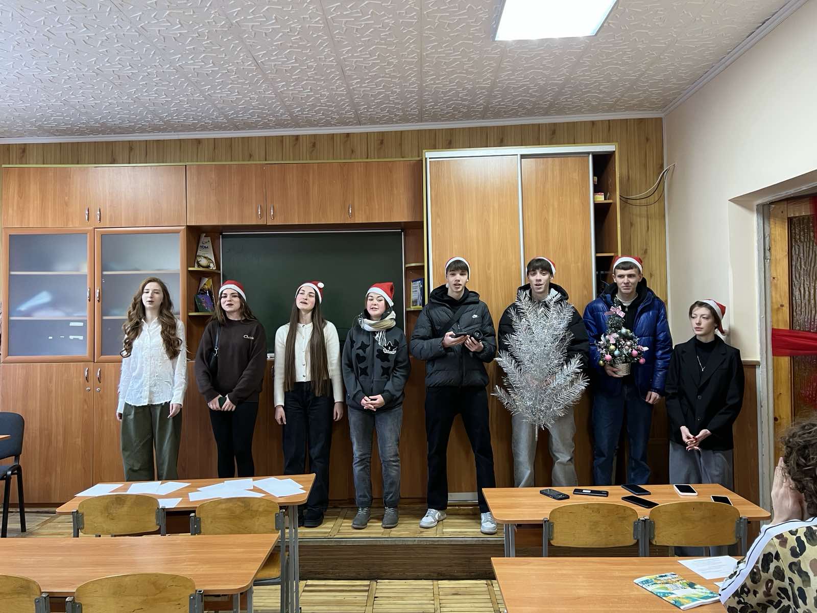 This year's Christmas was celebrated by students of Vinnytsia Technical Applied College by singing carols and famous Christmas and New Year songs. Group 2EE, together with group 1KI3, greeted groups 1M, 1TC, 1RE with Christmas songs. It was fun, creative, and warm. Greetings are always appropriate because they warm the soul.