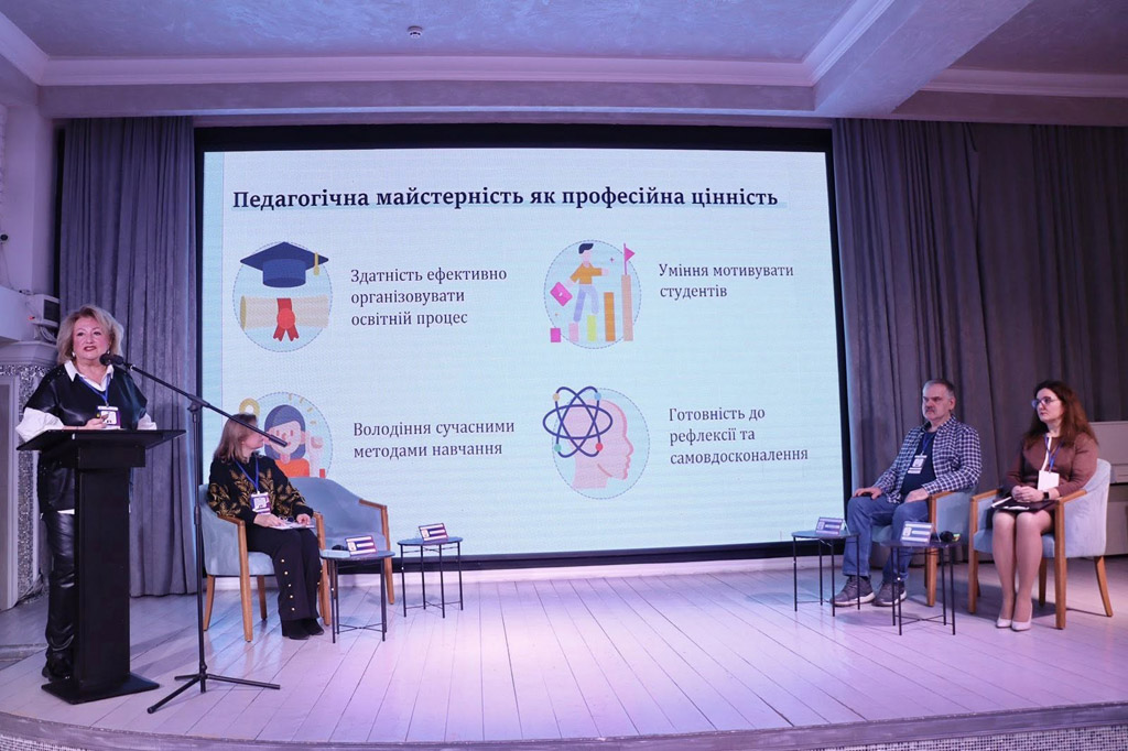 «Я вірю в те, що сильна держава починається з майстерності педагога і тримається на його мудрості й серці. Без сумніву, жодна найсучасніша технологія не здатна замінити живе слово педагога, його віри в студента та його особистого прикладу. Так, ми живемо і працюємо в час стрімких змін. Освітні онлайн-платформи, штучний інтелект, симулятори, віртуальні лабораторії – все це наше з вами сьогодення і частина навчального процесу. Однак технології – це тільки інструмент, якому саме викладач надає сенсу. Для того, аби кожен з нас міг виконати найважливішу з місій педагога, сформувати мисляче, відповідальне та професійне покоління фахівців ми в нашому коледжі тримаємо руку на пульсі новітніх трендів, ідей та освітніх підходів», – зазначила під час своєї доповіді Світлана Василюк, директорка ВТФК.