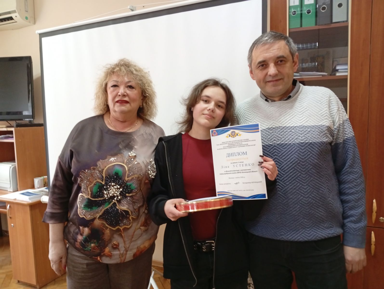На засіданні адмінради коледжу вона вручила переможниці олімпіади і її наставнику подарунки, які приємно доповнили офіційні нагоди. Кажуть, математика - це мова Всесвіту, а в нашому коледжі нею володіють “на відмінно”!