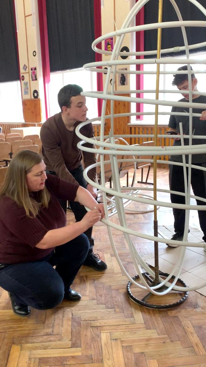 Над розрахунком макета та визначенням оптимального розміру гігантського яйця працювала завідувачка відділення комп’ютерної інженерії Наталя Щегоцька. По тому, разом зі студентами, техпрацівниками і викладачами збирали каркас з поліпропіленових труб.