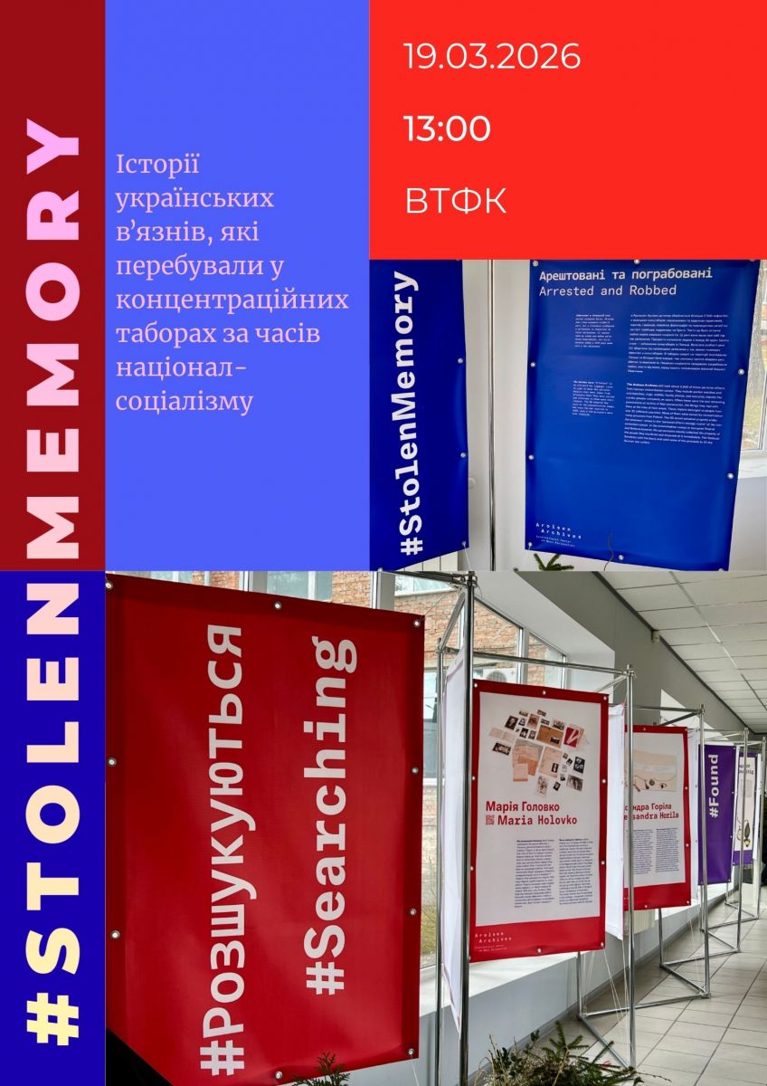 Пересувна виставка під назвою #StolenMemory розгорнеться в галереї ВТФК вже в четвер,19 травня, о 13:00. Вона розповідає історії українських вʼязнів, які перебували в концентраційних таборах за часів націонал-соціалізму. Окрім того, на плакатах представлені фотографії особистих речей, що були викрадені на момент арешту.