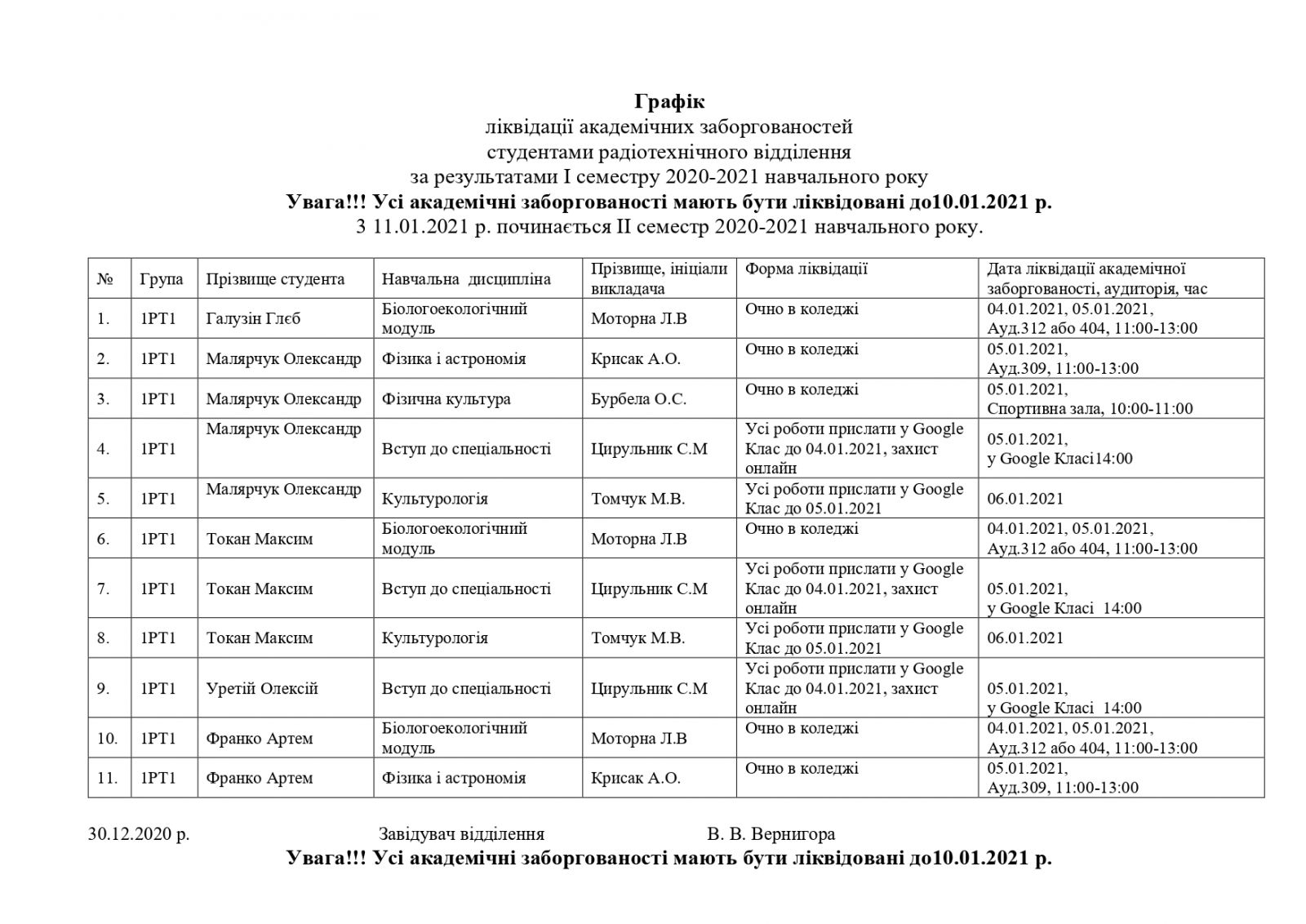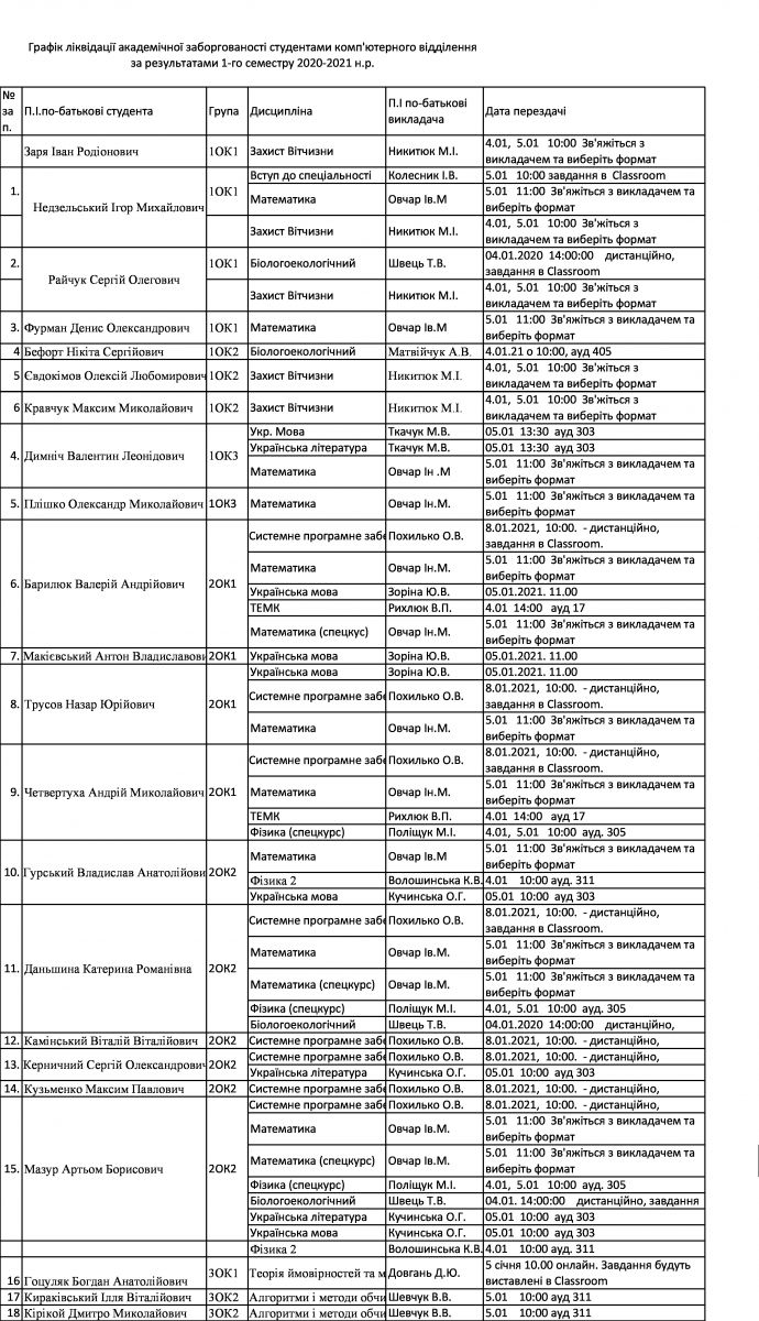 Оголошення 02/01/2021Графік ліквідації академічних заборгованостей фінансово-економічного відділення за І семестр 2020-2021 н.р. Детальніше02/01/2021Графік ліквідації академічних заборгованостей студентами електромеханічного відділення за результатами І семестру 2020-2021 навчального року ДетальнішеГрафік ліквідації академічних заборгованостей студентами радіотехнічного відділення за результатами І семестру 2020-2021 навчального року Детальніше02/01/2021Графік ліквідації академічної заборгованості студентами комп'ютерного відділення за результатами І семестру 2020-2021 н.р. 06/07/2020Графік ліквідації академічних заборгованостей студентами радіотехнічного відділення за результатами ІІ семестру 2019-2020 навчального року Детальніше Показати ще