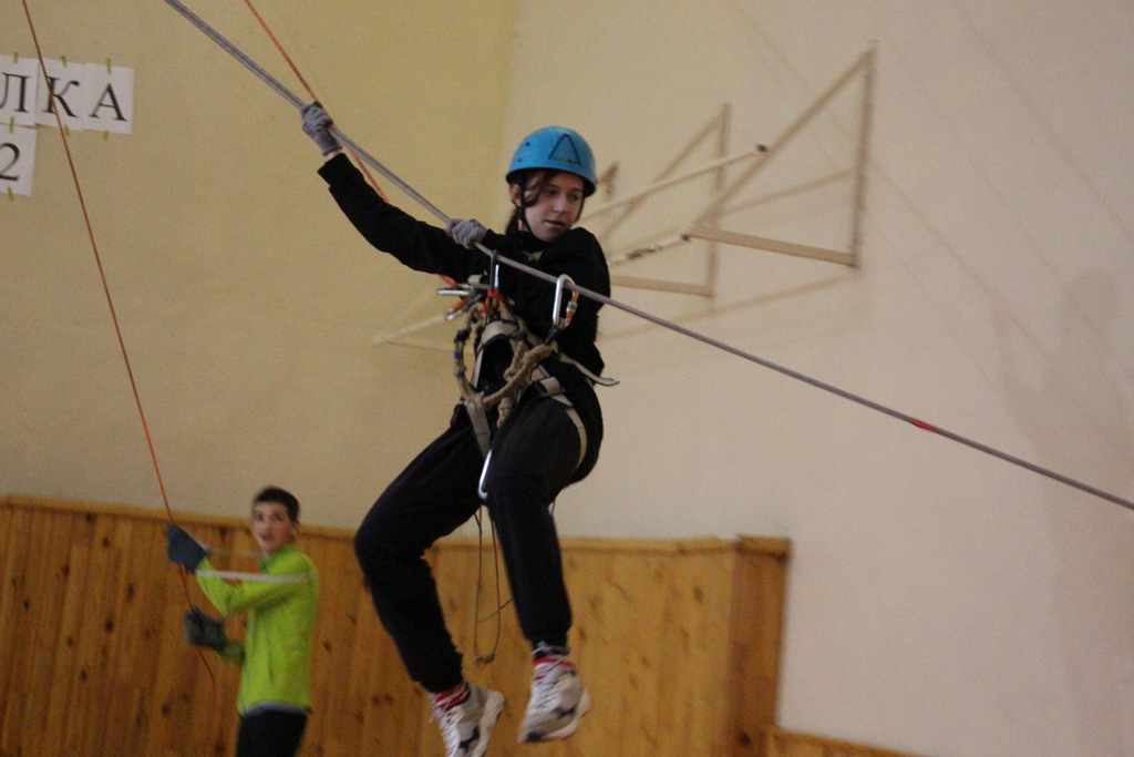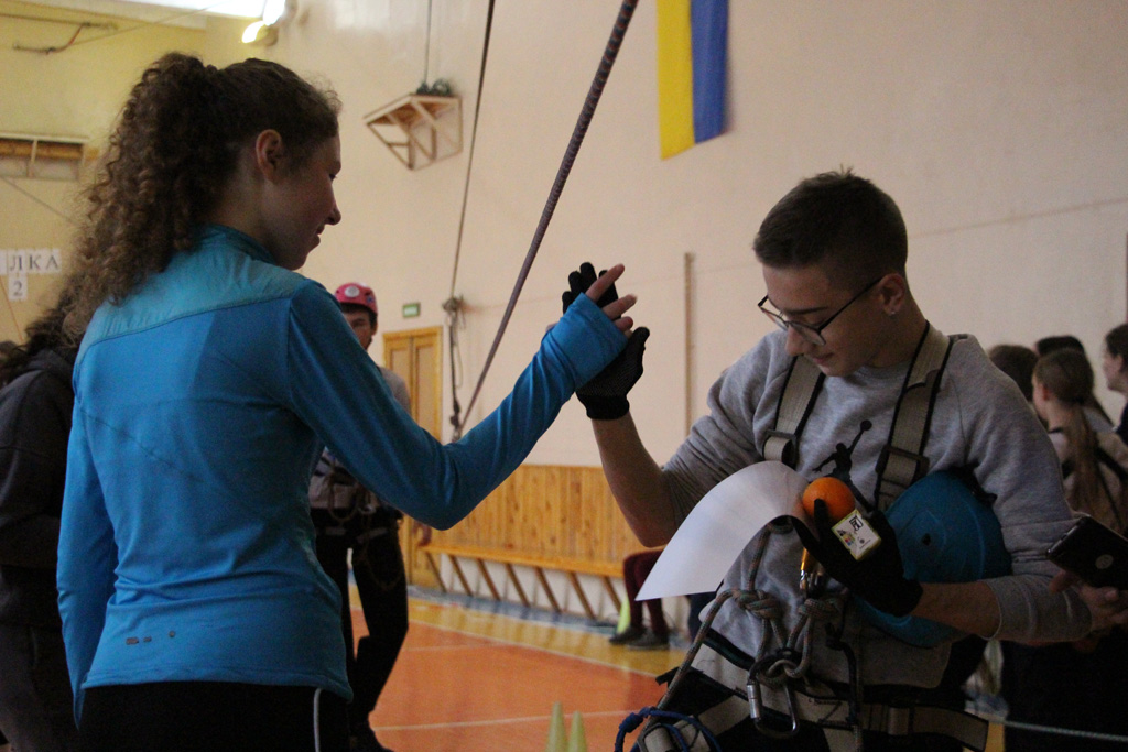 Майже 140 юніорів у чотирьох вікових категоріях долали дистанцію “Особиста смуга перешкод”. На швидкість обходили умовне болото по жердинах, імітували підйом на скелю та крутопохилу переправу вниз, а за нею переправу по паралельних мотузках і спуск по схилу.