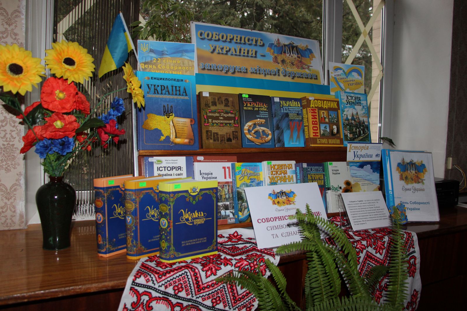 Книги, що оповідають про цей тернистий шлях, працівники бібліотеки нашого коледжу зібрали в літературній експозиції «Соборність України-запорука міцної держави».