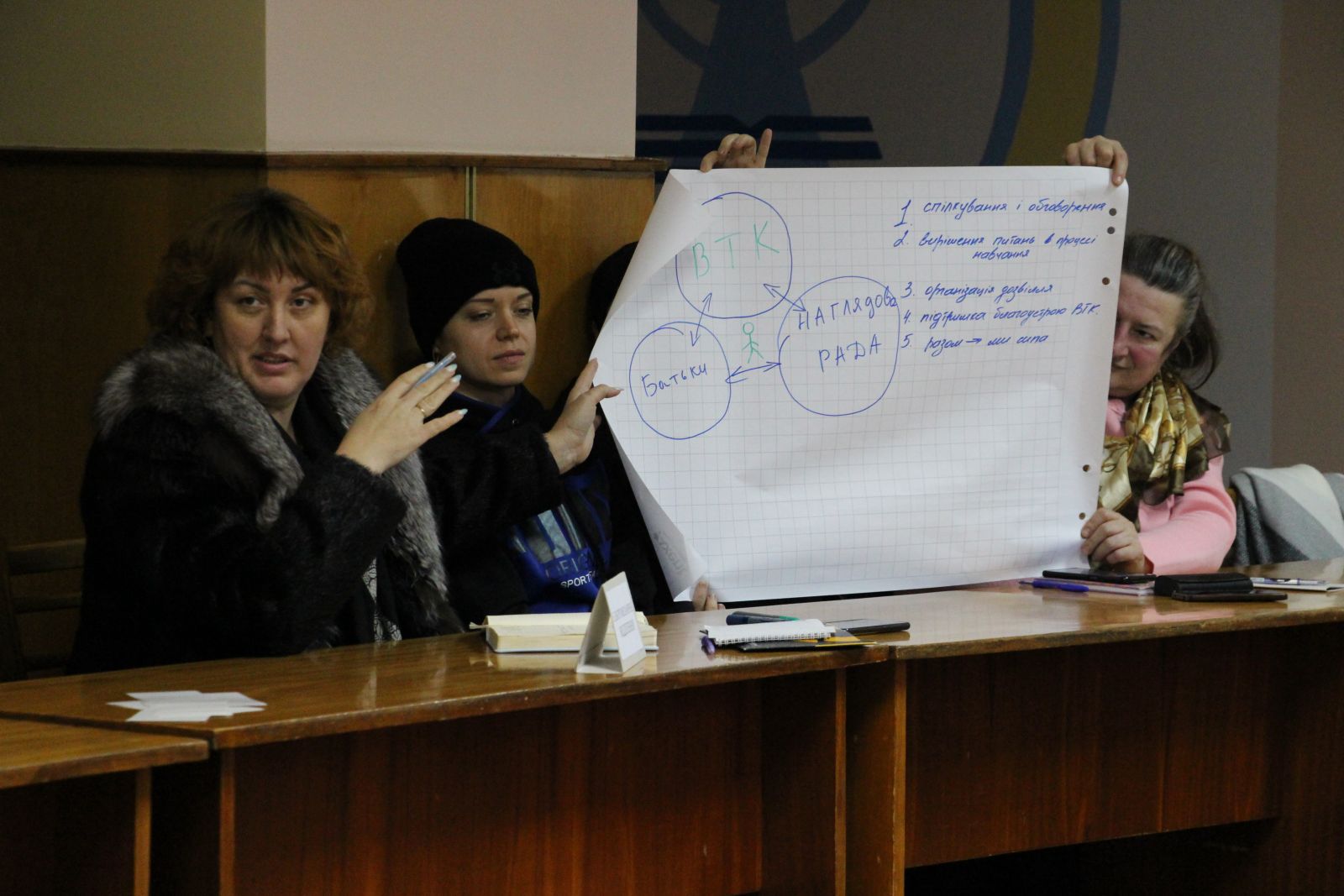 Як цього досягти, радились під час зустрічі з головами батьківських рад відділень та груп коледжу. Своє бачення співпраці активісти з числа батьків та викладачі сформулювали, виконуючи завдання спільного тренінгу.