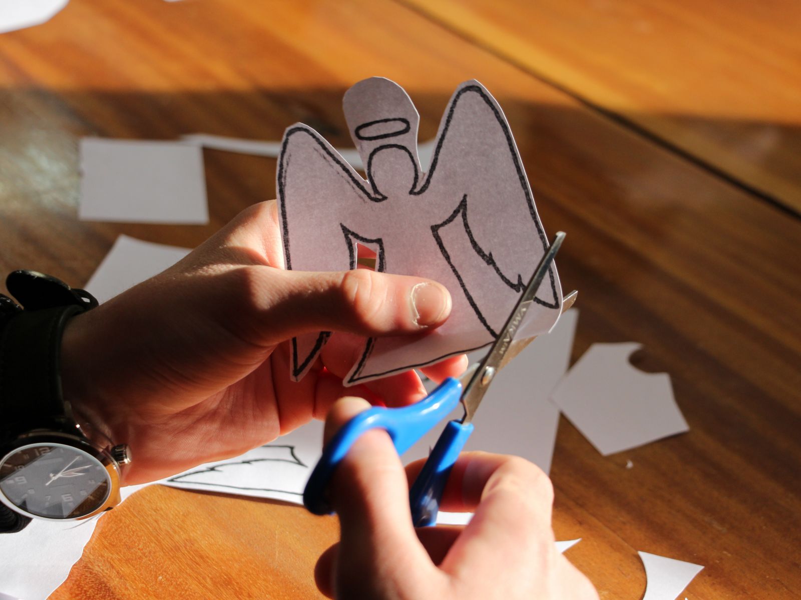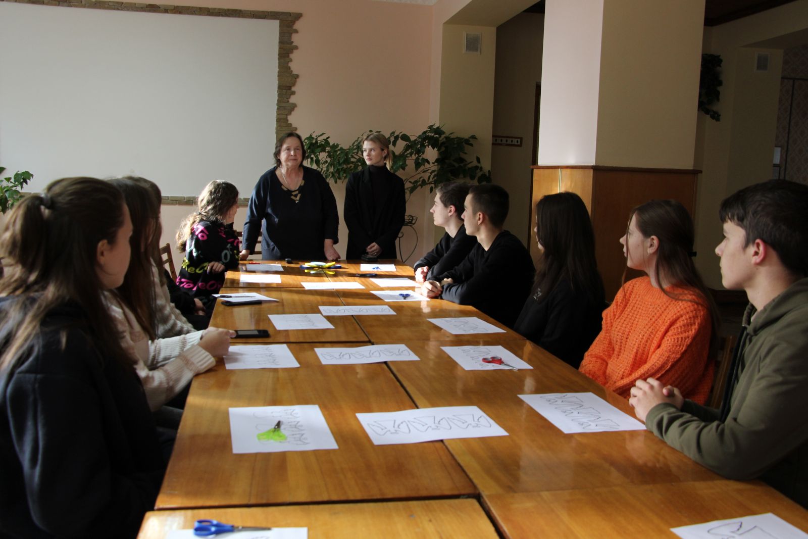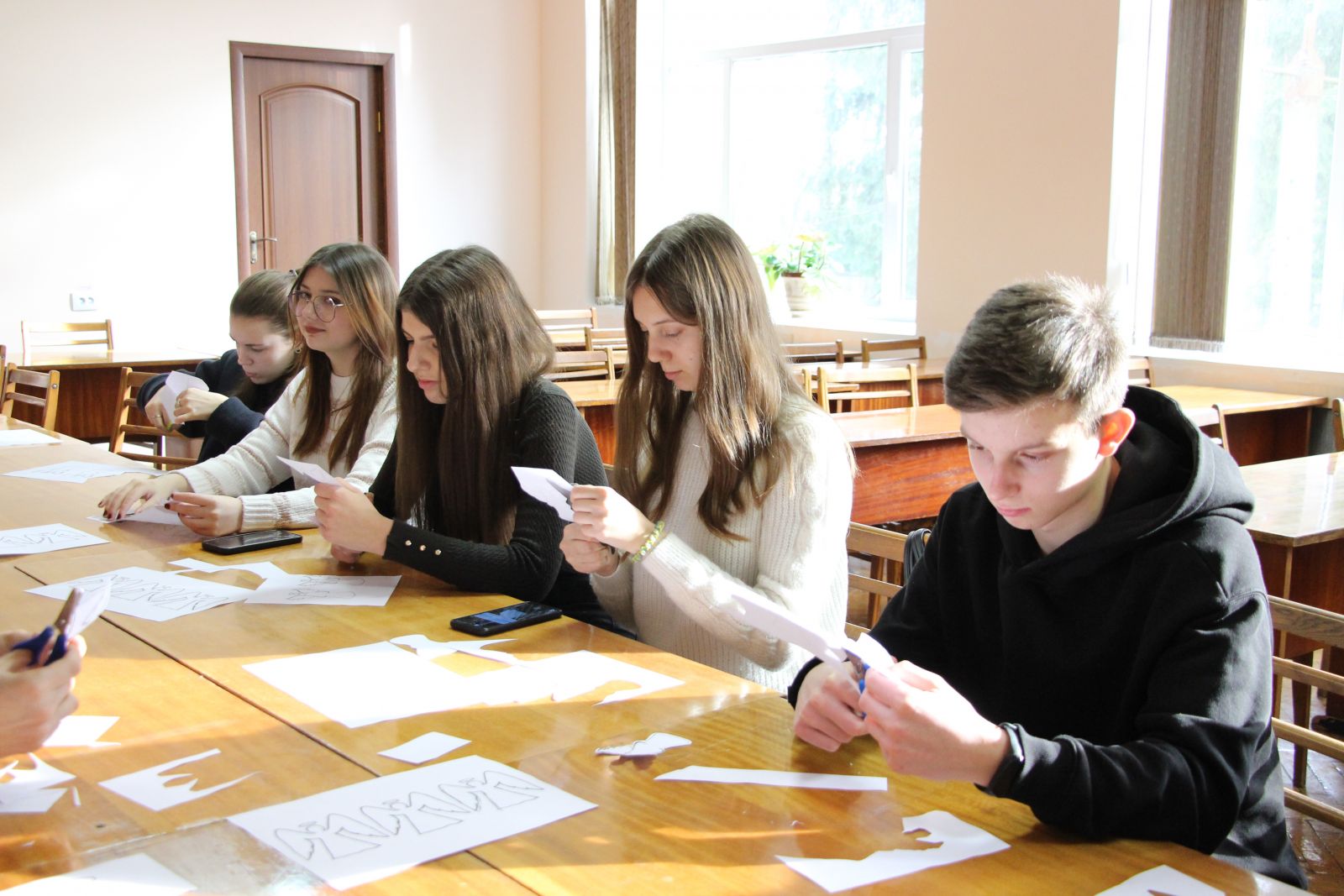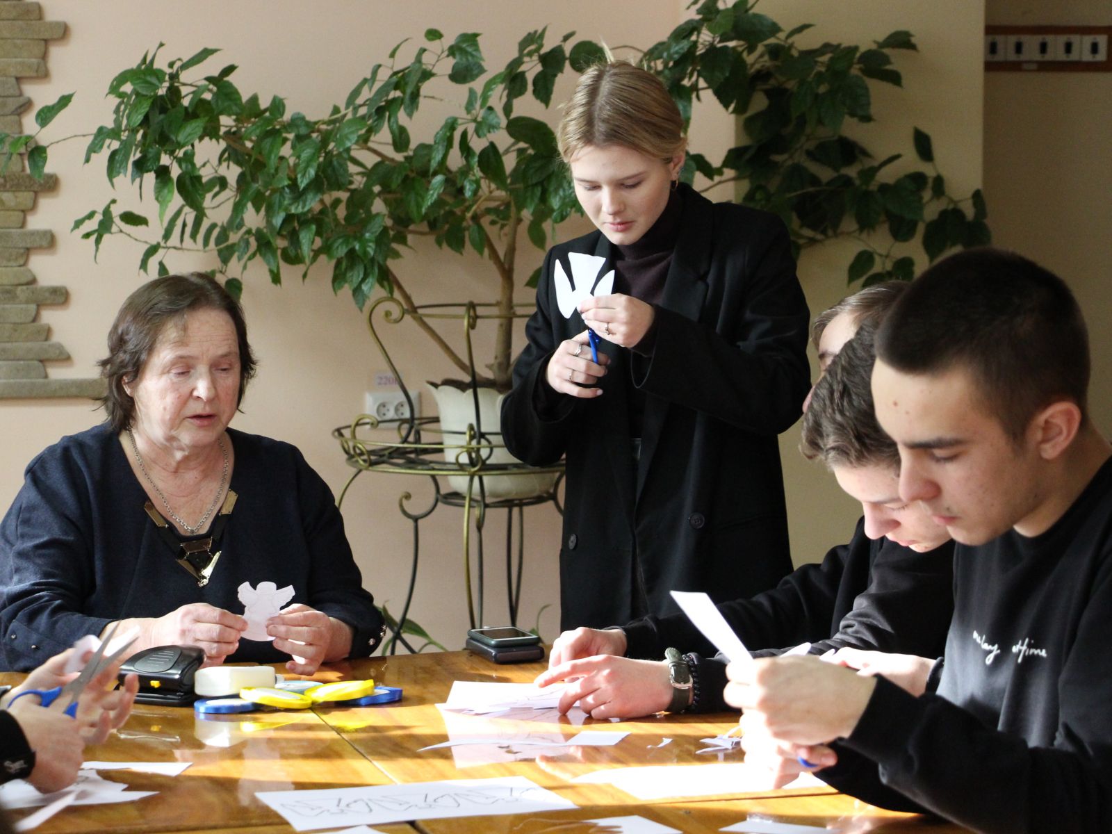 Підтримати Олену та поговорити зі студентами прийшла на майстер-клас до нашого коледжу Зоя Кузьменко, мати загиблого Максима Шимка. Разом вирізали і клеїли янголів пам’яті.