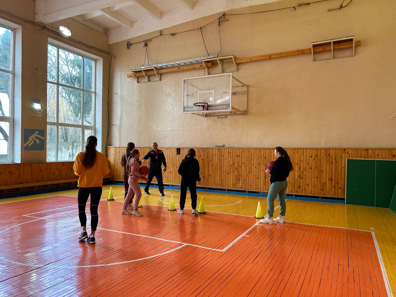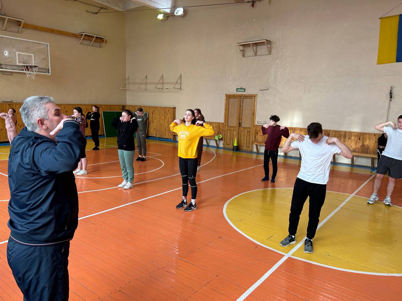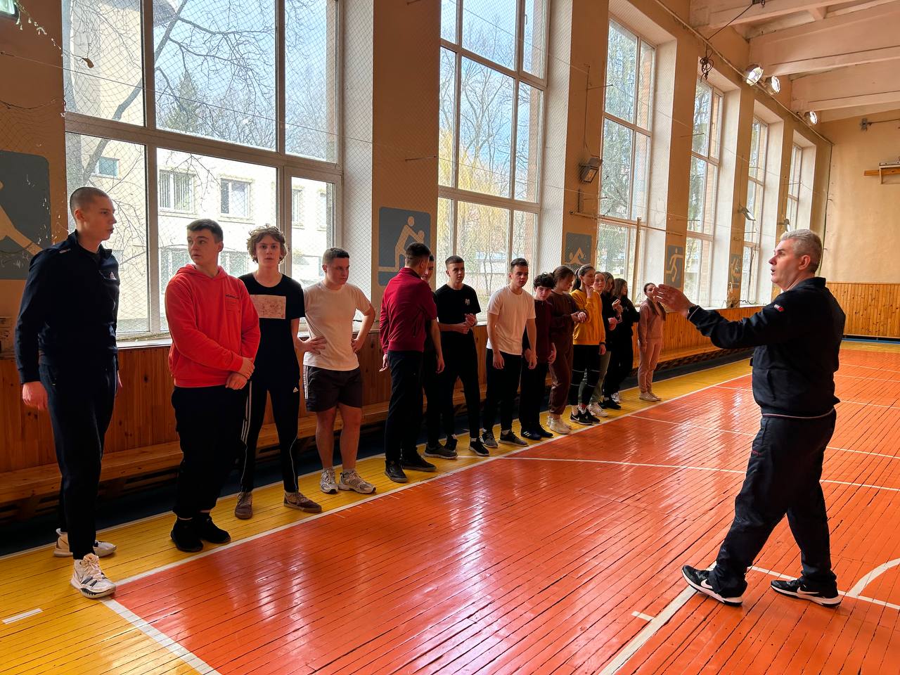 Для розігріву студенти з ентузіазмом виконали комплекс загальнорозвиваючих спортивних завдань. “Ранні пташки” з групи 2ЕП повправлялись у веденні м’яча, подвійному кроці і кидках в кільце.