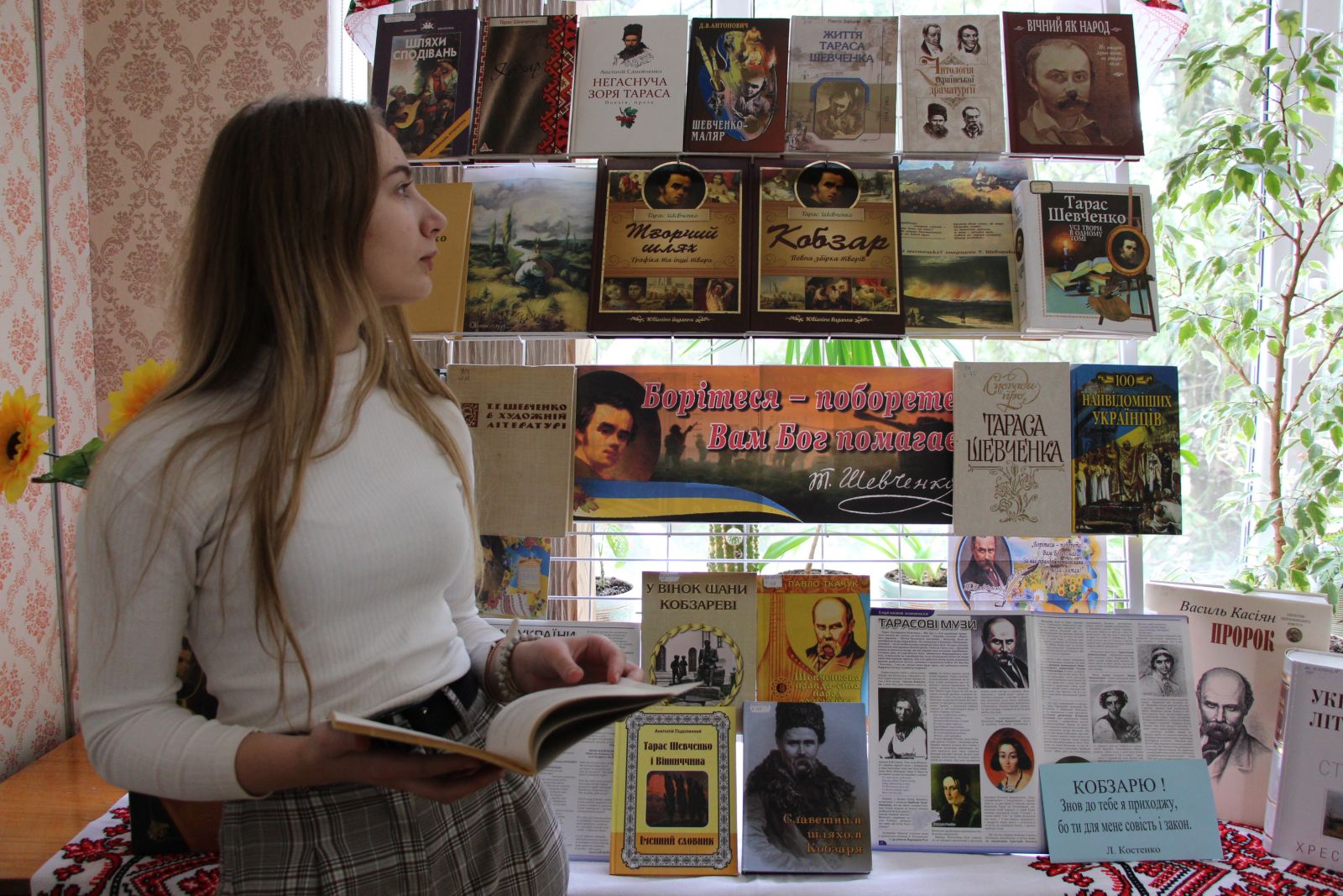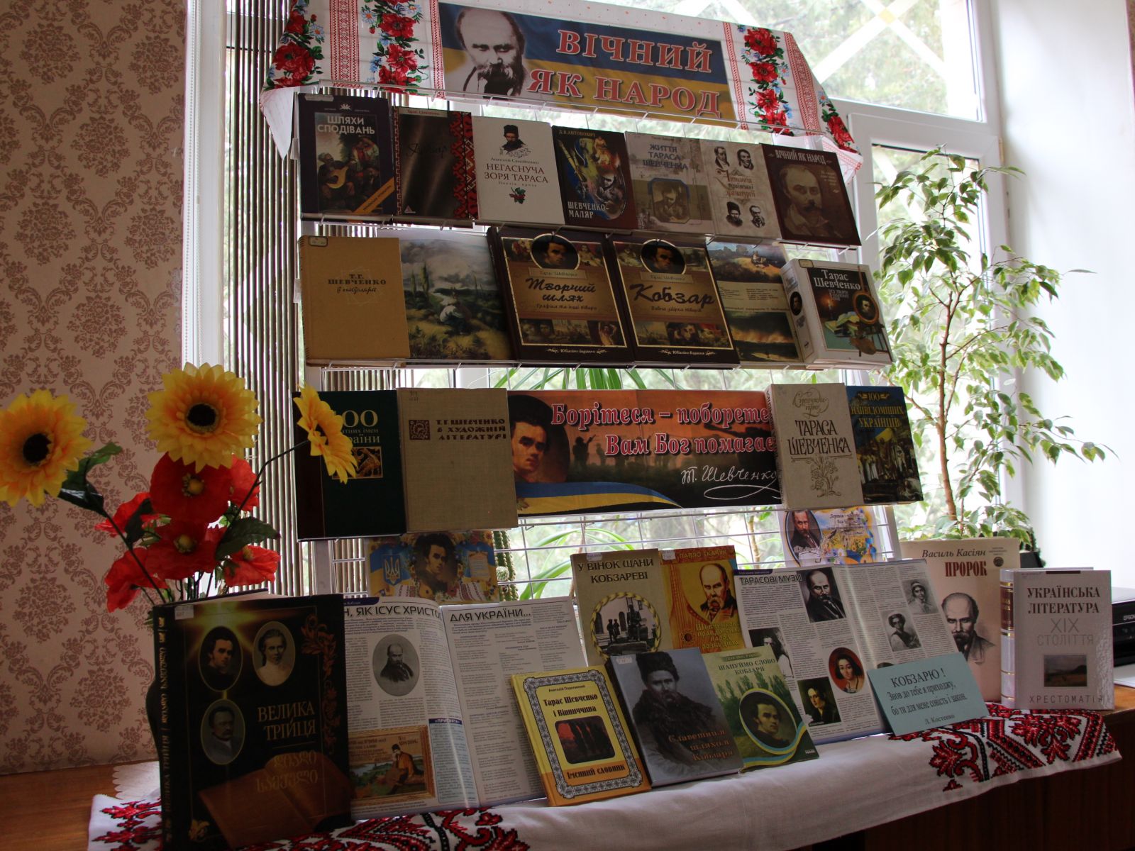 Для експозиції працівники бібліотеки підібрали видання, що розповідають про творчий та життєвий шлях Тараса Шевченка, його спадок як поета, художника, мислителя і борця за вільну Україну.
