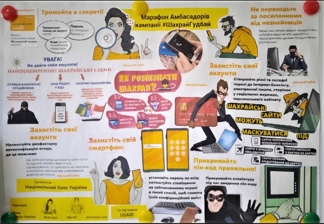 У стилізованому під комікси форматі молодь привертає увагу однолітків до найпоширеніших сценаріїв платіжного шахрайства. Аби видурити гроші у довірливих громадян злодії використовують всі можливості сучасних цифрових та інтернет технологій!