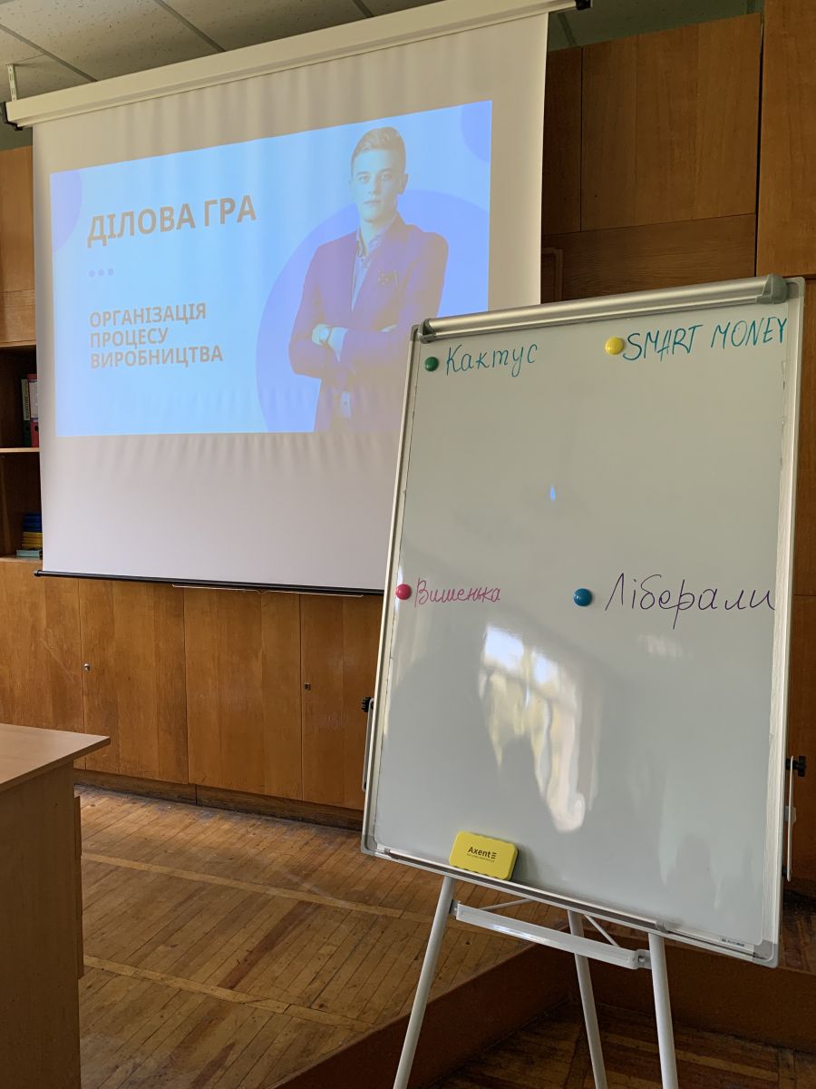 Мозковий штурм в питаннях організації виробництва студенти влаштували об'єднавшись в чотири команди. “Ліберали”, “Кактус”, “Вишенька” та “Smart Money” проходили два етапи гри.
