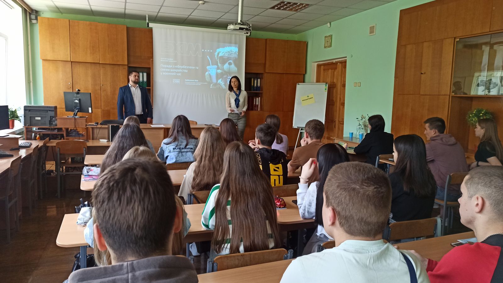 Микола Холод, керівник напрямку управління середнього бізнесу муніципалітетів та комунального сектору, і його колега Лілія Гребельська, головний економіст управління по роботі з клієнтами пріоритетного сегменту, спираючись на професійний досвід, пояснили студентам, які схеми використовують фінансові шахраї і як їх обійти.