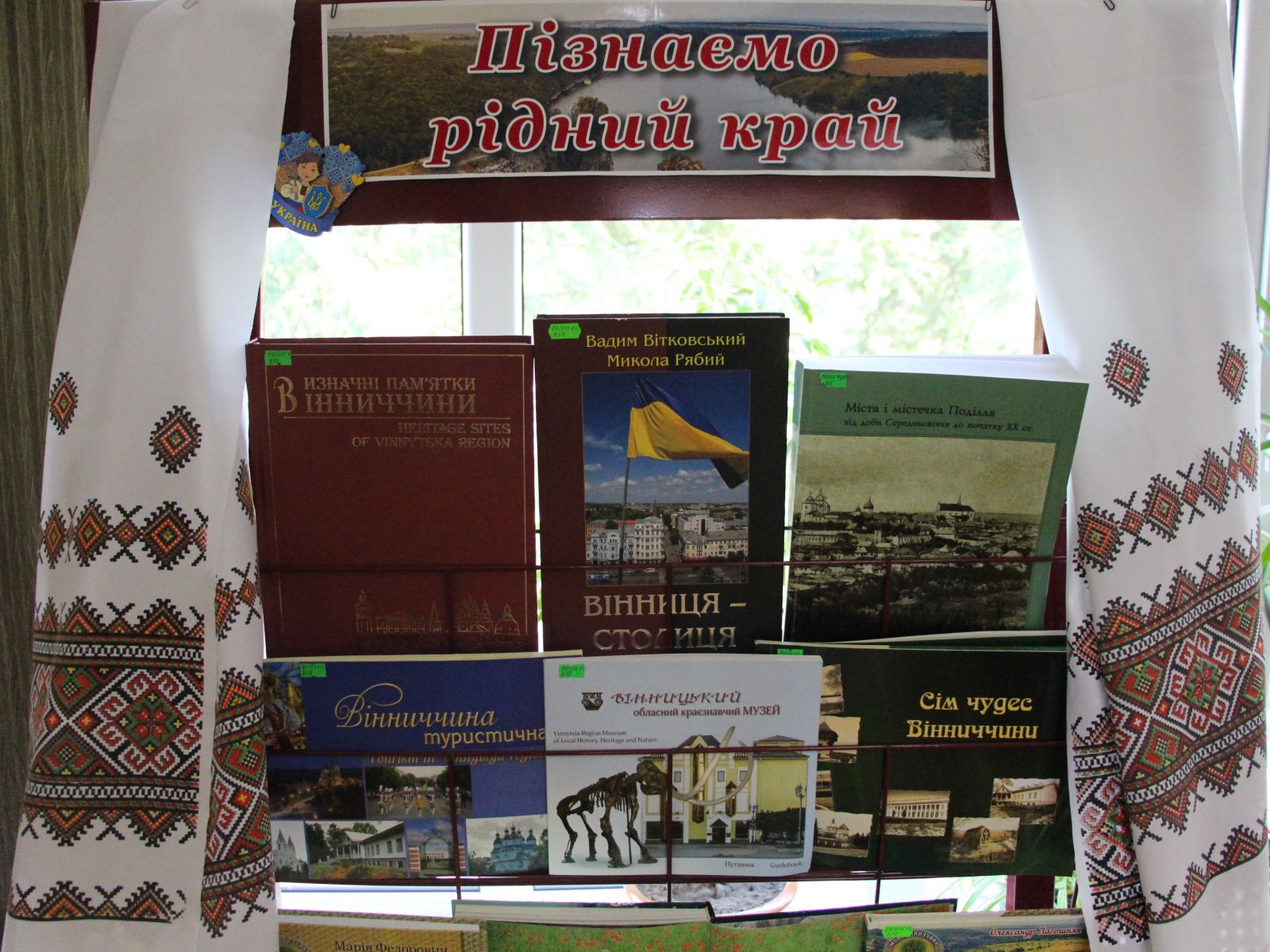 День краєзнавства працівники нашої бібліотеки відзначили новою книжковою виставкою. В експозиції «Пізнаємо рідний край» зібрали видання, що оповідають історії різних місцин Вінниччини.
