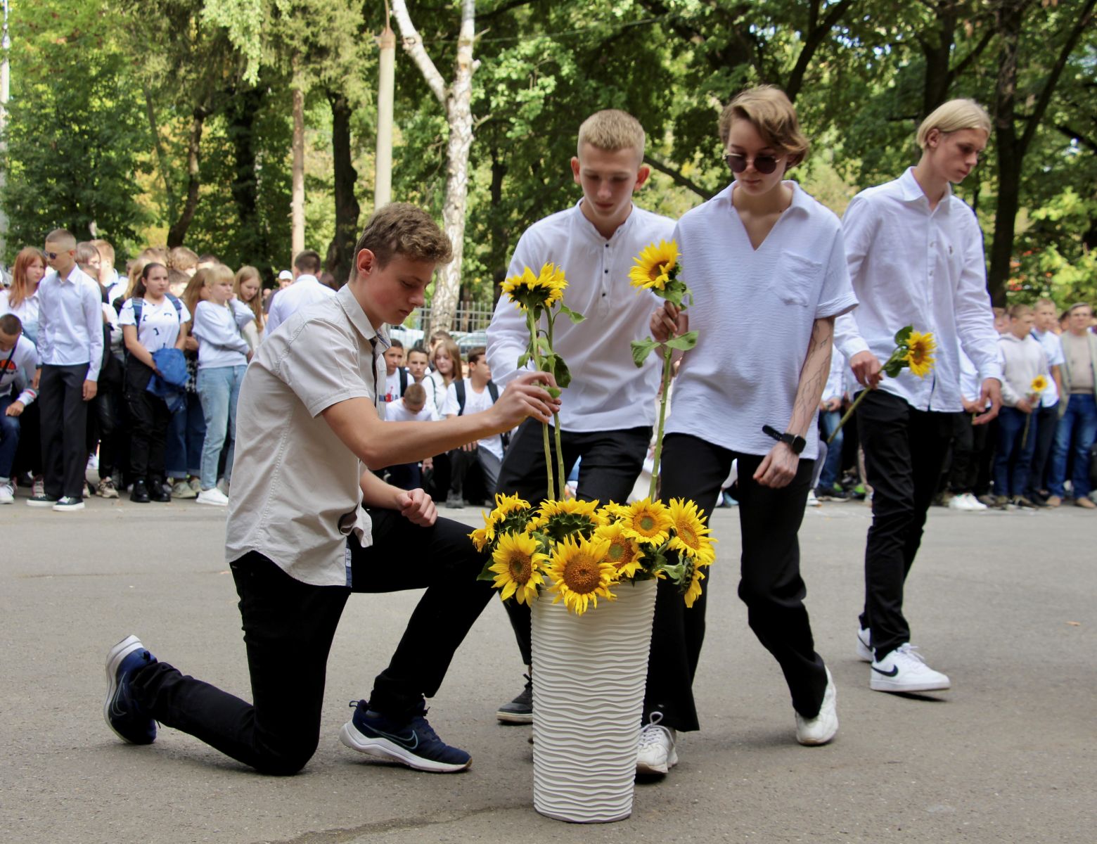 Одягнені в біле, із сучасним символом скорботи в руках - квіткою соняшника, хлопці та дівчата хвилиною мовчання вшанували пам’ять Героїв та акапельно виконали Гімн України.