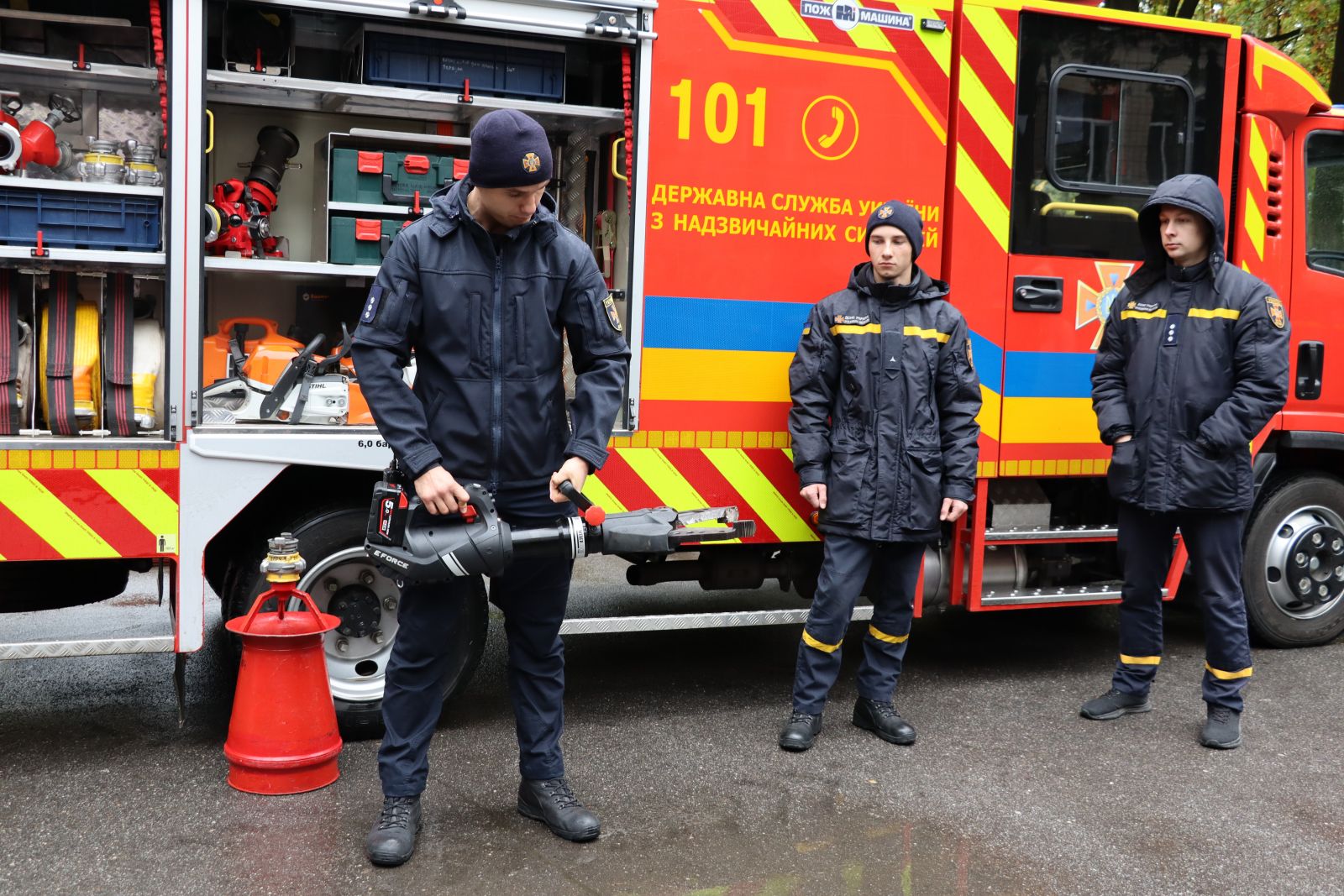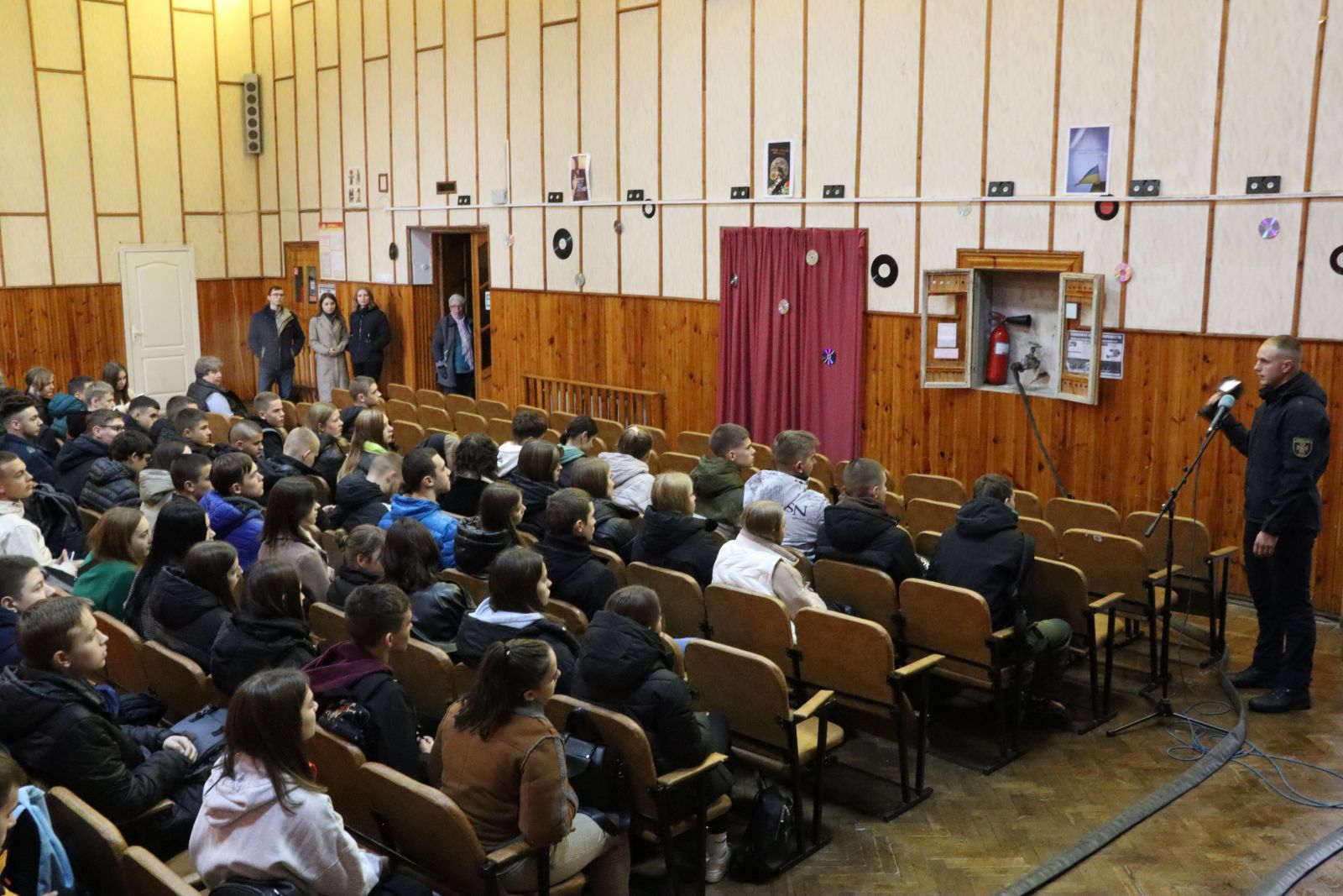 Богдан Огородник, заступник начальника частини з оперативного реагування, розповів нашим другокурсникам про спеціальне рятувальне обладнання, яке застосовують під час ліквідації пожеж та інших надзвичайних ситуацій. Зокрема, він наочно продемонстрував алгоритм використання вогнегасника.
