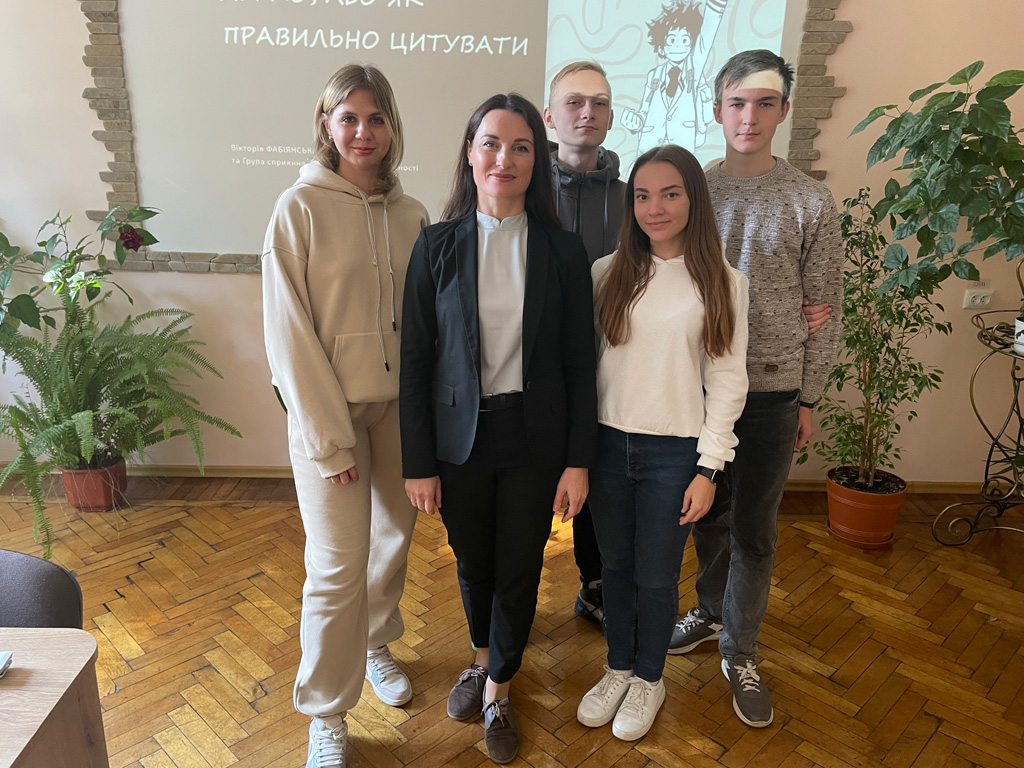 Цього разу з основними правилами цитування знайомилися студенти груп 4ОП і 4ВЕ. Тренінг для них провела Група сприяння академічній доброчесності ВТФК на чолі з кураторкою Вікторією Фабіянською.