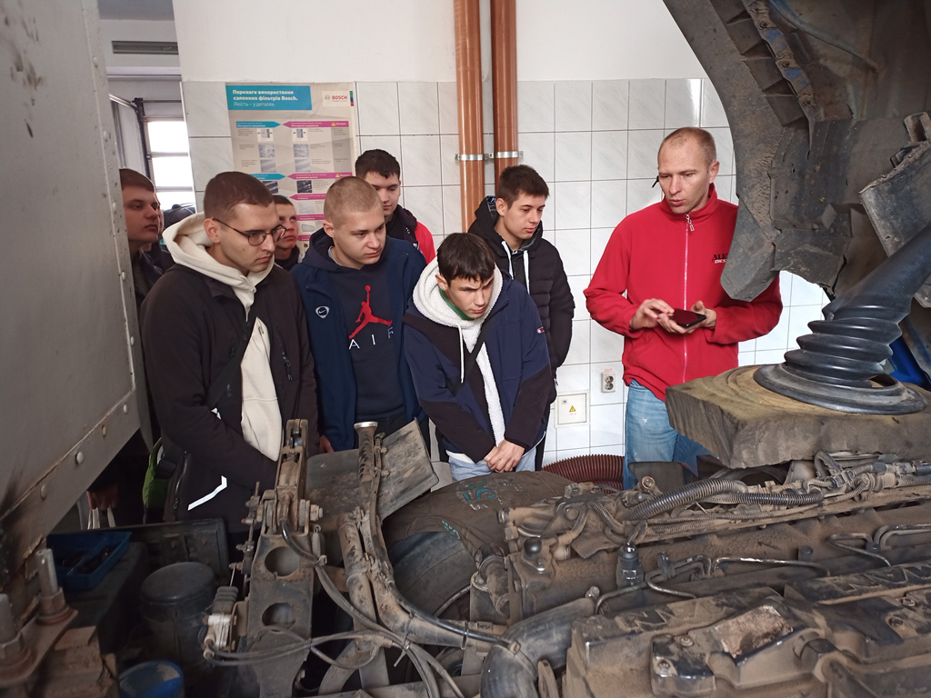 Для своїх майбутніх колег з групи 4ЕА1 вони провели екскурсію ремонтно-діагностичними підрозділами сервісного центру. Показали сучасне, високотехнологічне обладнання, апаратуру, що дозволяє швидко виявляти несправності паливної системи автомобіля.