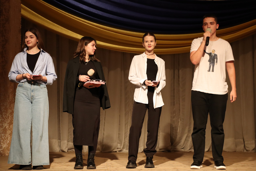 Першими, за цілком заслуженими нагородами, на сцену піднялись наші найграмотніші першокурсники. Олександра Іщук (група 1Ф) та Віталій Яремко (група 1ЕП ) допустили найменшу кількість помилок під час написання Радіодиктанту національної єдності – 2023.