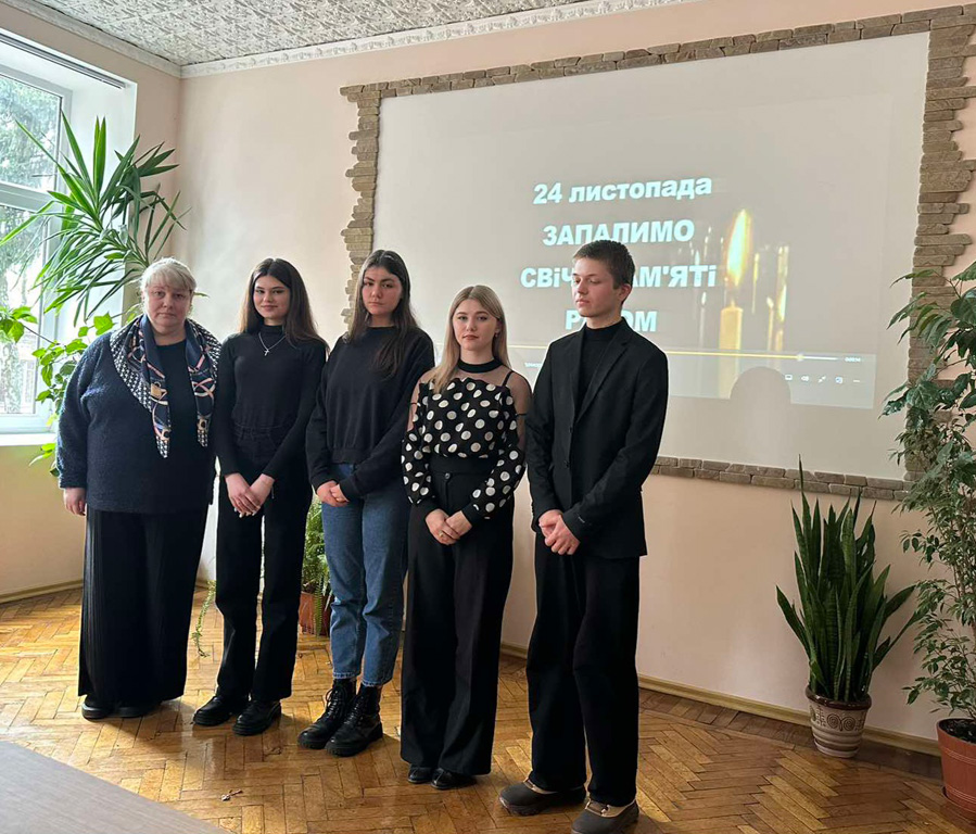 Свічку пам’яті за невинно загиблими запалили і в нашому коледжі... З повагою до історичного минулого у читальній залі зібрались студенти груп 1ЕП і 1КІ1 разом із викладачкою соціальних дисциплін Ольгою Романюк.
