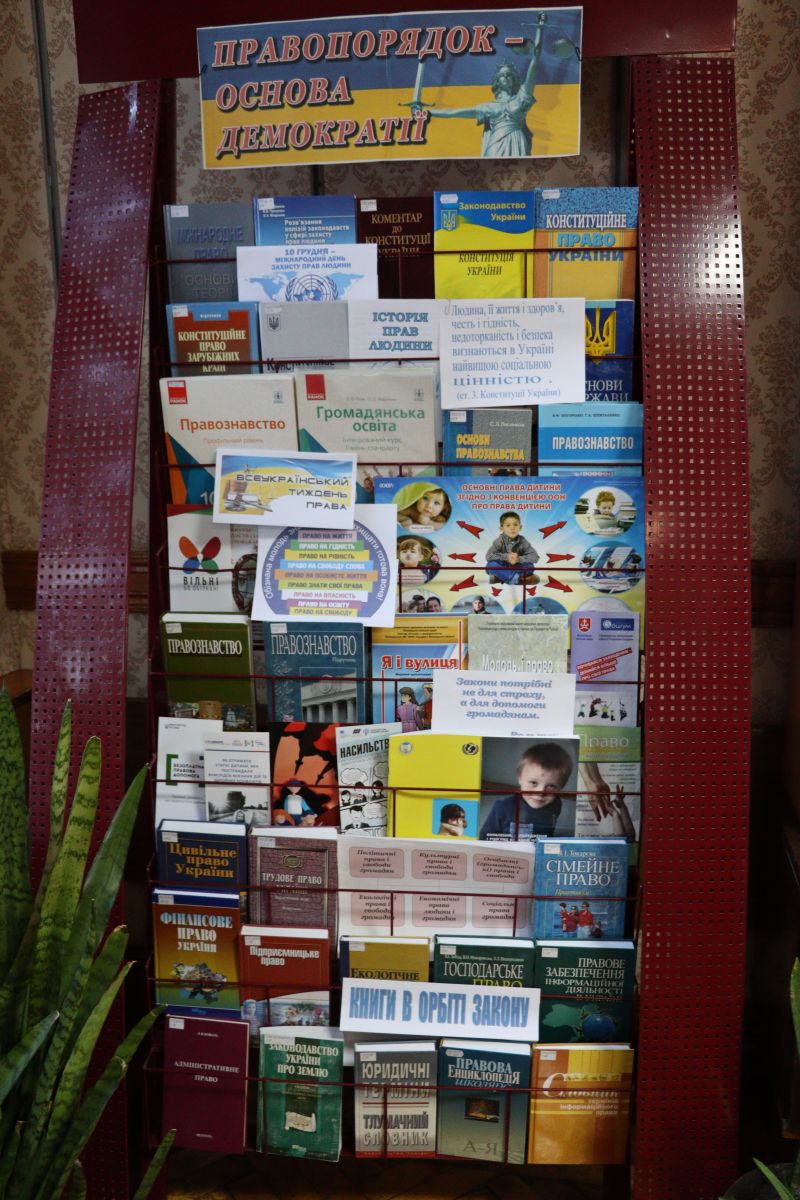 У бібліотеці нашого коледжу до міжнародного День захисту прав людини розгорнули тематичну книжкову виставку «Правопорядок – основа демократії». Це зібрання видань з основ демократії, конституційно-правових механізмів забезпечення прав та свобод людини і громадянина в Україні.