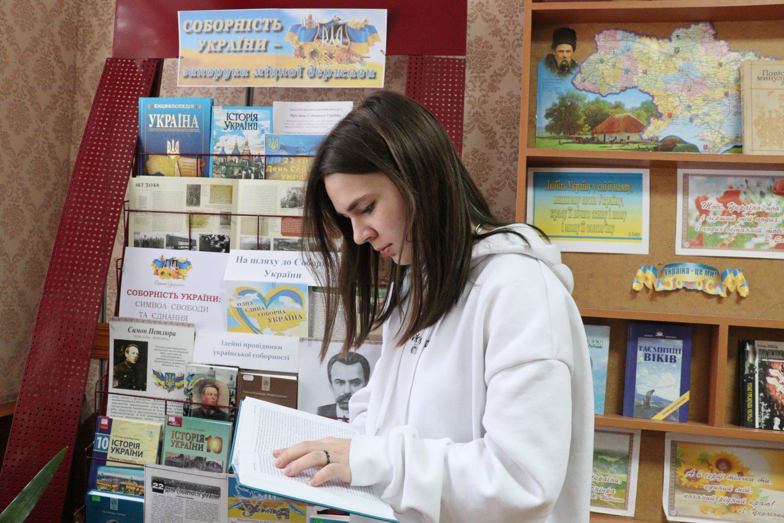 Вони створили книжковий ланцюг єдності “Соборність України - запорука міцної держави” в читальній залі! До виставки-хроніки залучили літературну спадщину різних періодів: від класики до сучасності.