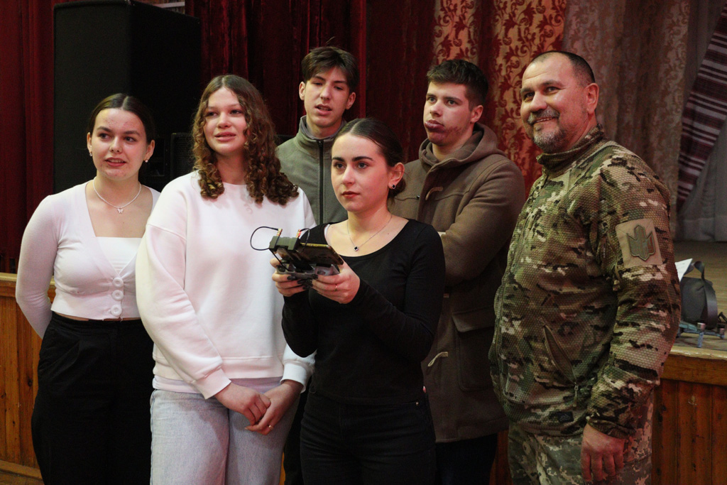 Після теорії перейшли до практики. Аеророзвідник запропонував охочим покерувати дроном. Найсміливішими виявились…дівчата! І хоч тримали пульти вперше - впорались чудово! Студенти зізнались, було і лячно, і захопливо одночасно.