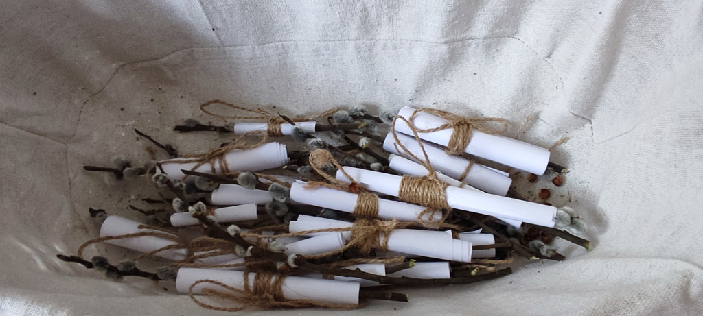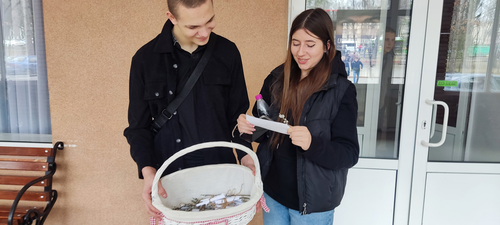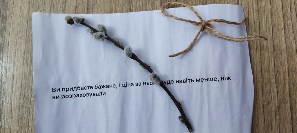 Для підняття настрою всім, хто заходив у центральний корпус, пропонували ще й зазирнути в майбутнє! Гілочки верби обгорнули папірцями з веселими і позитивними передбаченнями!