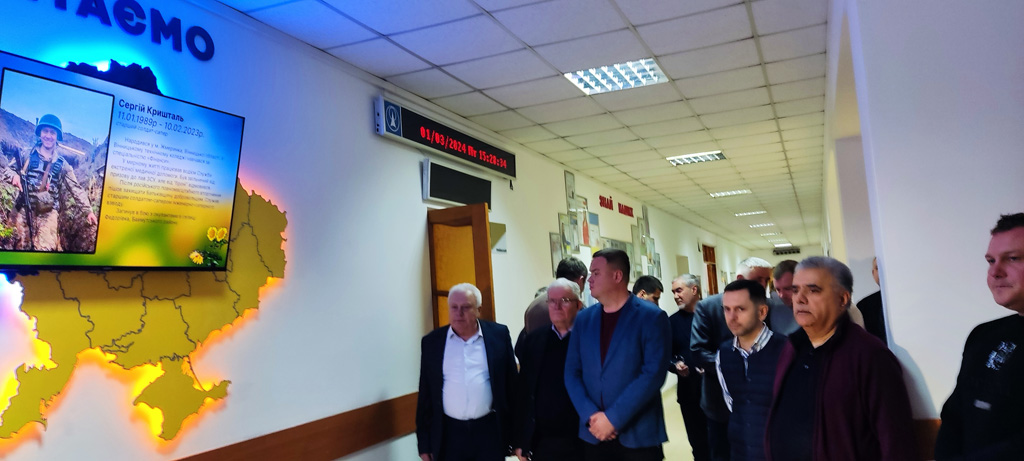 Перш за все віддали шану героям біля інтерактивної дошки пам’яті загиблим випускникам ВТФК….