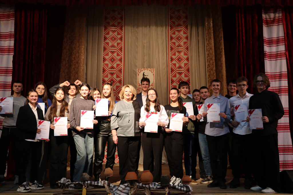 Доповнили програму пам’ятного вечора пісенні і танцювальні композиції за мотивами творів Тараса Шевченка у виконанні наших артистів. На завершення студентам-переможцям внутрішніх етапів мовних конкурсів і олімпіад директорка ВТФК Світлана Василюк урочисто вручила почесні грамоти!