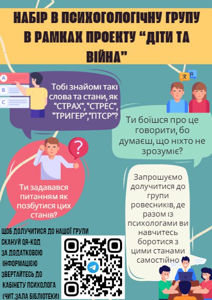 Впоратись з глибокими психологічними травмами молоді допомагають фахові спеціалісти, втім нерідко впоратись із негативними емоціями і стресом підлітки можуть і самі. Як переосмислити складні життєві ситуації студентам нашого коледжу пояснюватимуть психологи.