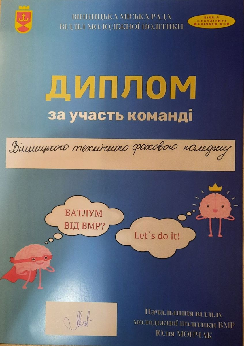 Задля спільного результату кожен зі студентів використав інтелектуальний “заряд” на повну! І він не забарився. За кількістю балів наша команда посіла перше місце серед коледжів і четверте в загальному рейтингу! Винагородою став диплом учасників «БатлУМ» і солодкий бонус.