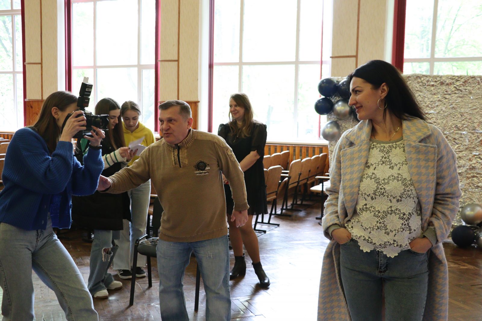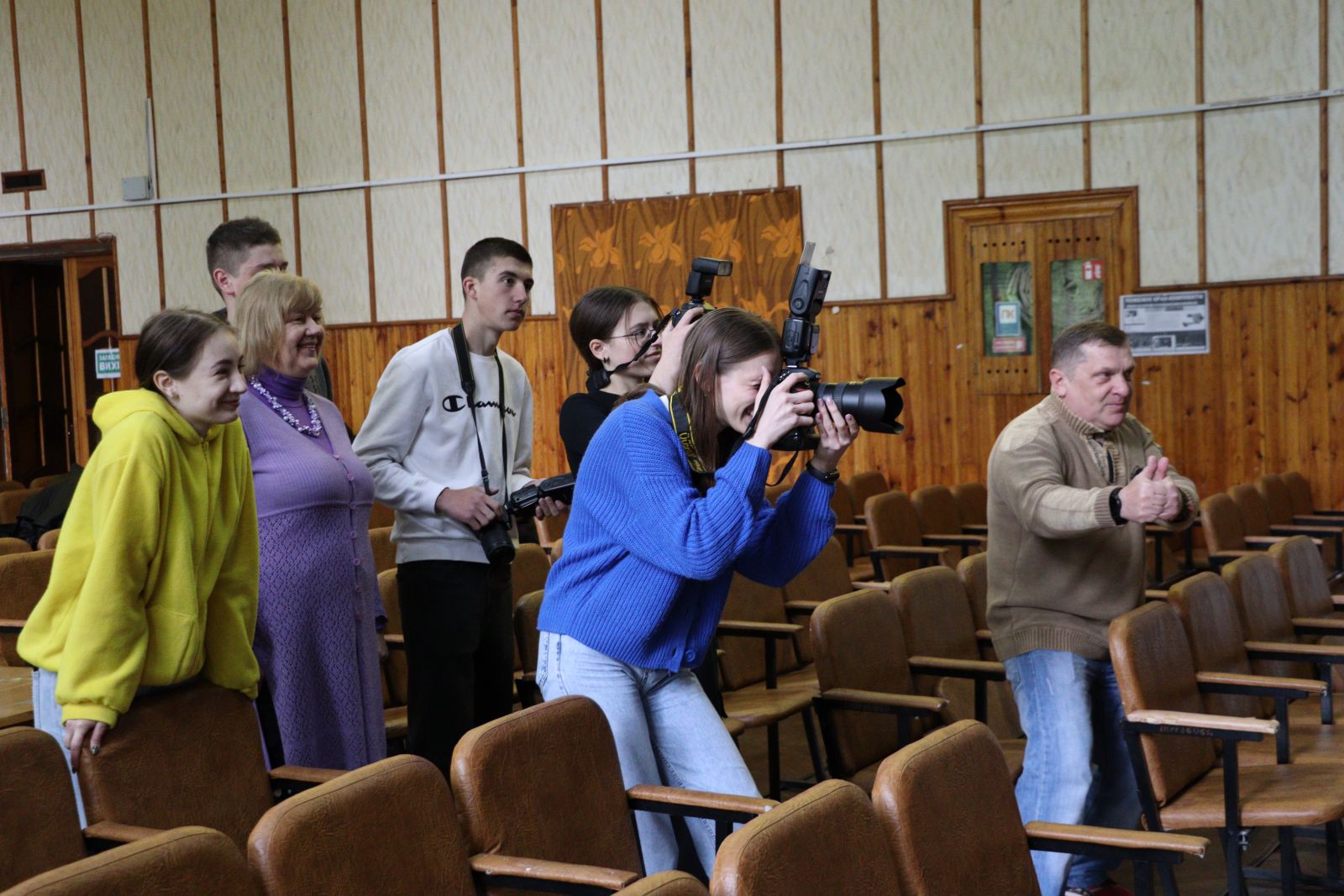 Фотостудія в актовій залі, а в ролі моделей - викладачі і студенти. Своє вміння зловити яскравий кадр гуртківці демонструють на заключному екзамені.