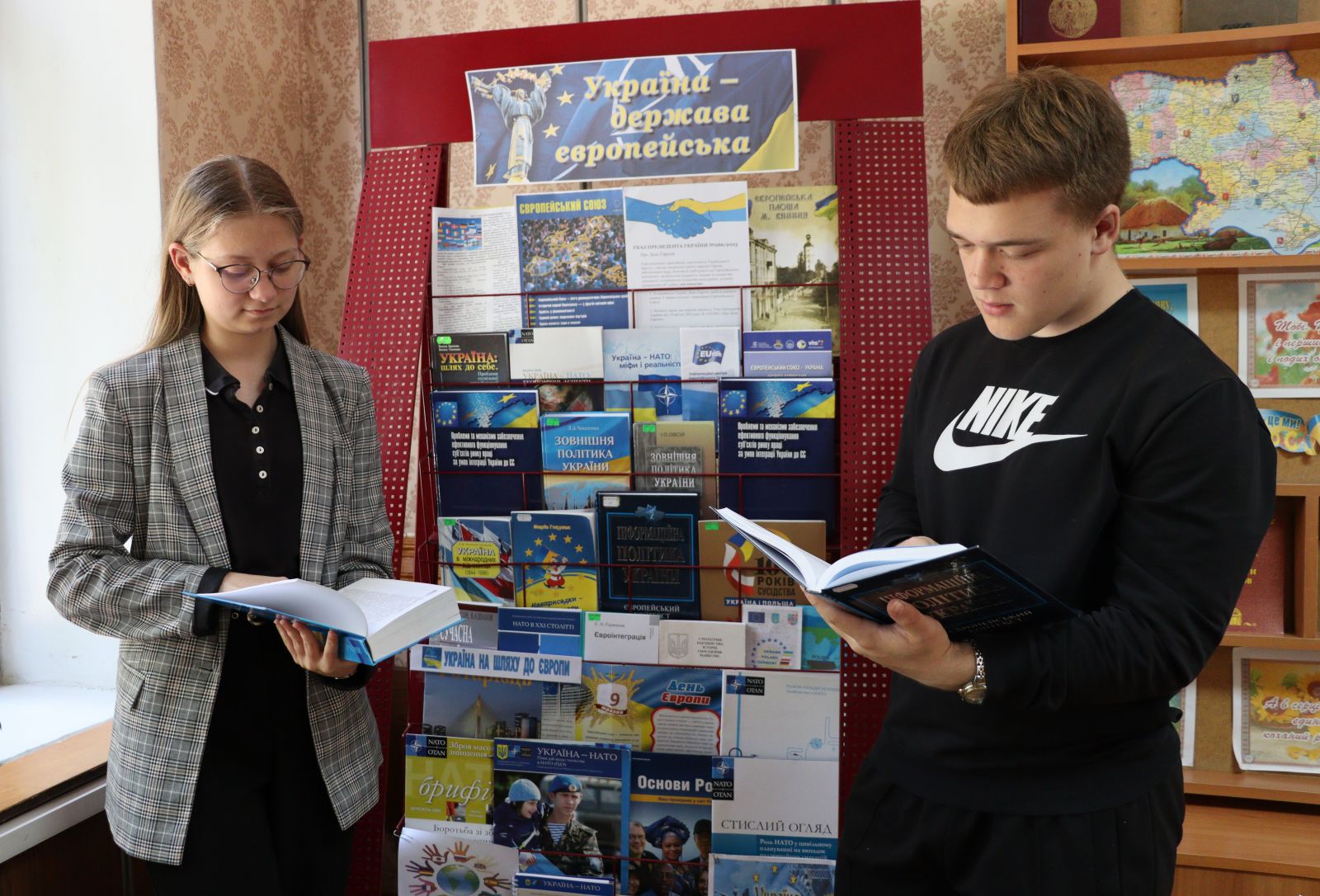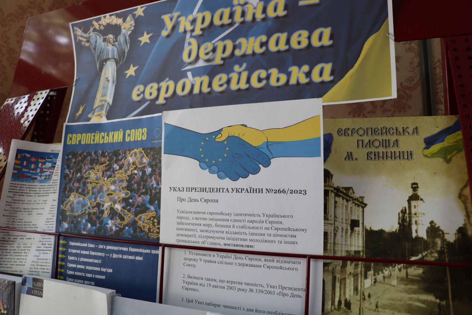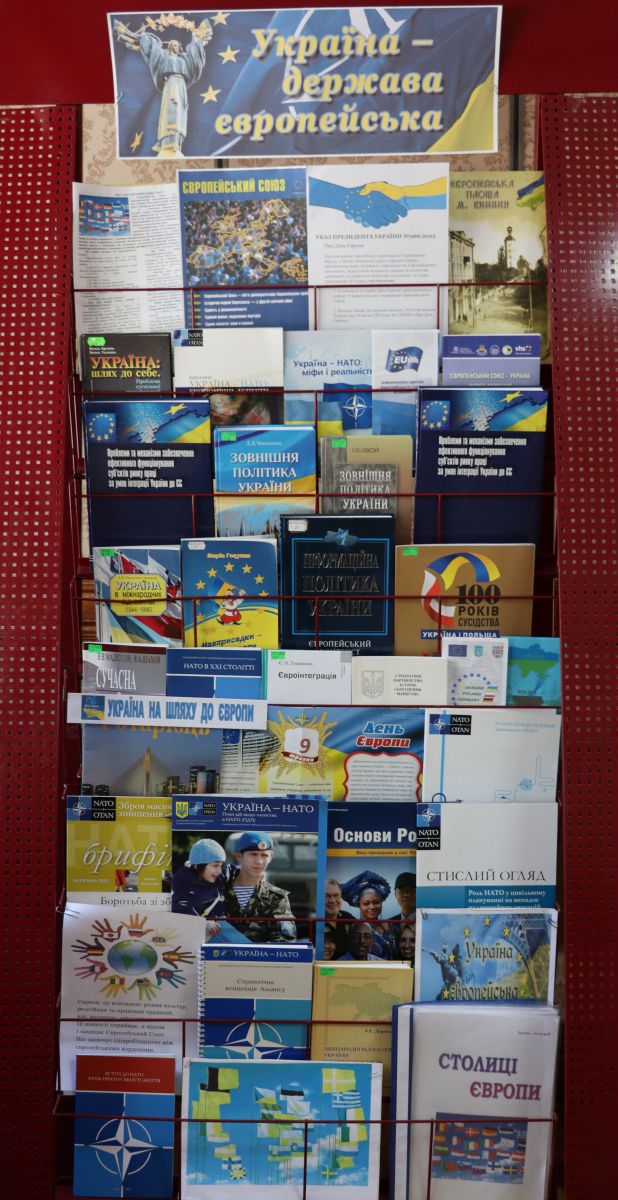 Книжковою експозицією «Україна-держава європейська» підтримали міжнародне свято демократичної співзвучності бібліотекарі нашого коледжу. Зібрані у ній видання розповідають про історію створення Євросоюзу і шлях України до приєднання.