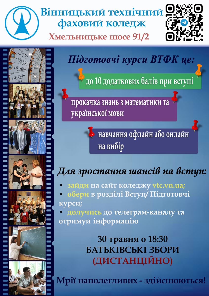 У нашому коледжі стартував попередній запис на підготовчі курси. Це унікальна і остання можливість зміцнити шанси стати студентом ВТФК!