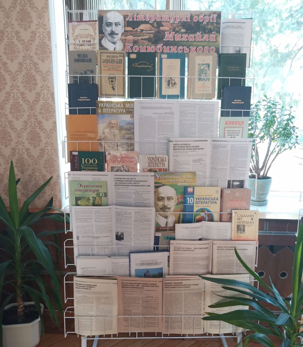 Унікальні видання творів, збірки новел, повістей та досліджень життєвого шляху Сонцепоклонника представлені на виставці-персоналії «Літературні обрії Михайла Коцюбинського».