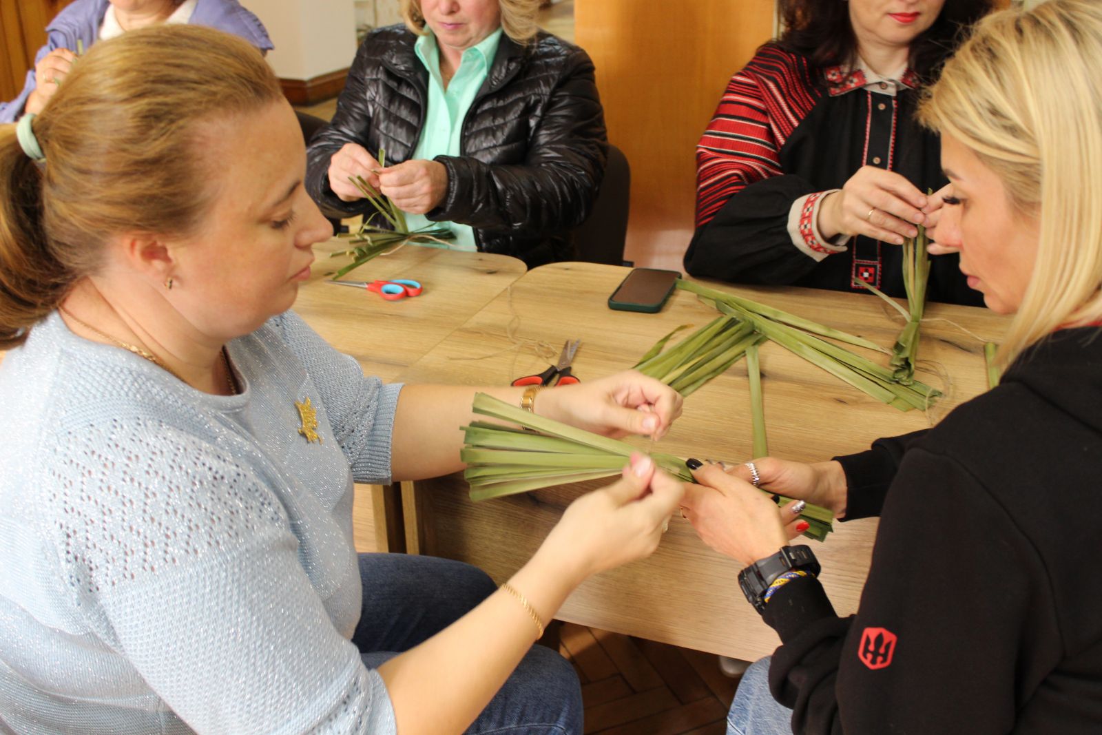 Вже в читальній залі нашого коледжу для рідних і близьких загиблих організували терапевтичний майстер-клас з рогозоплетіння. Зі старовинним українським ремеслом їх познайомила Галина Заєць, майстриня Вінницької централізованої клубної системи.. У спільній молитві, створили янголів у пам’ять про своїх Героїв небесного війська.