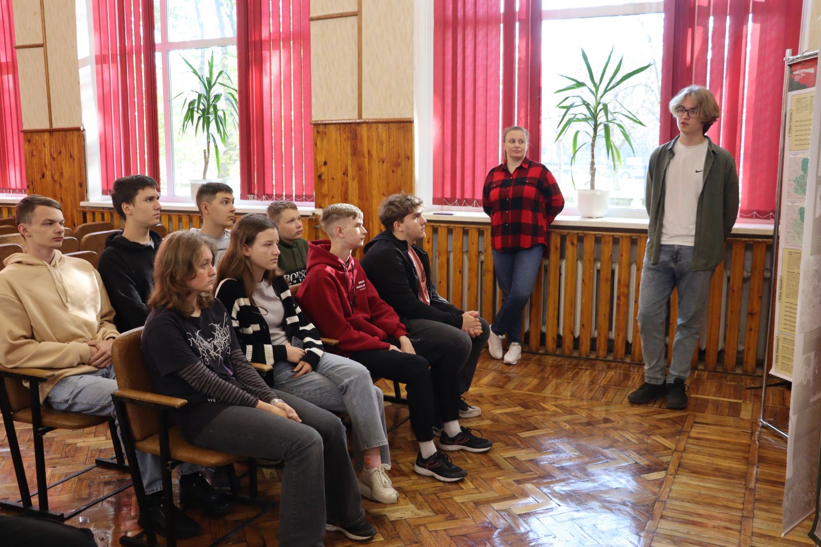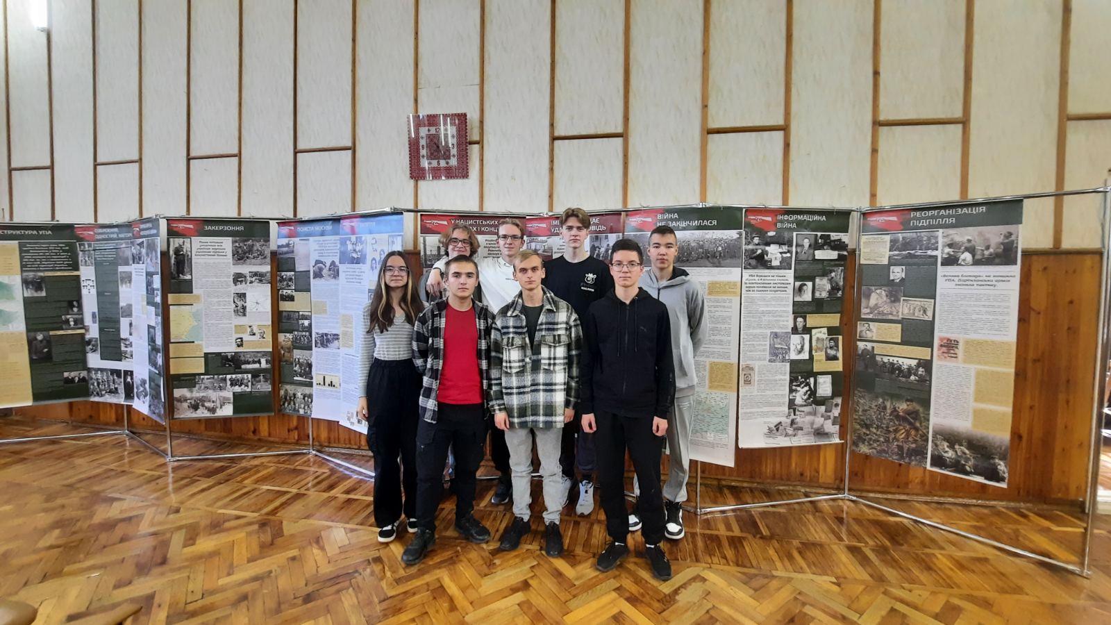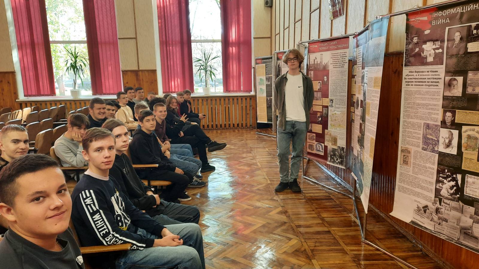 «УПА – відповідь нескореного народу». Стенди цього інформаційно-просвітницького проєкту допомогли Андрієві Гончарову, студенту групи 2КІ1, розповісти першокурсникам про історію створення, мету та завдання УПА, її незламних добровольців-патріотів.
