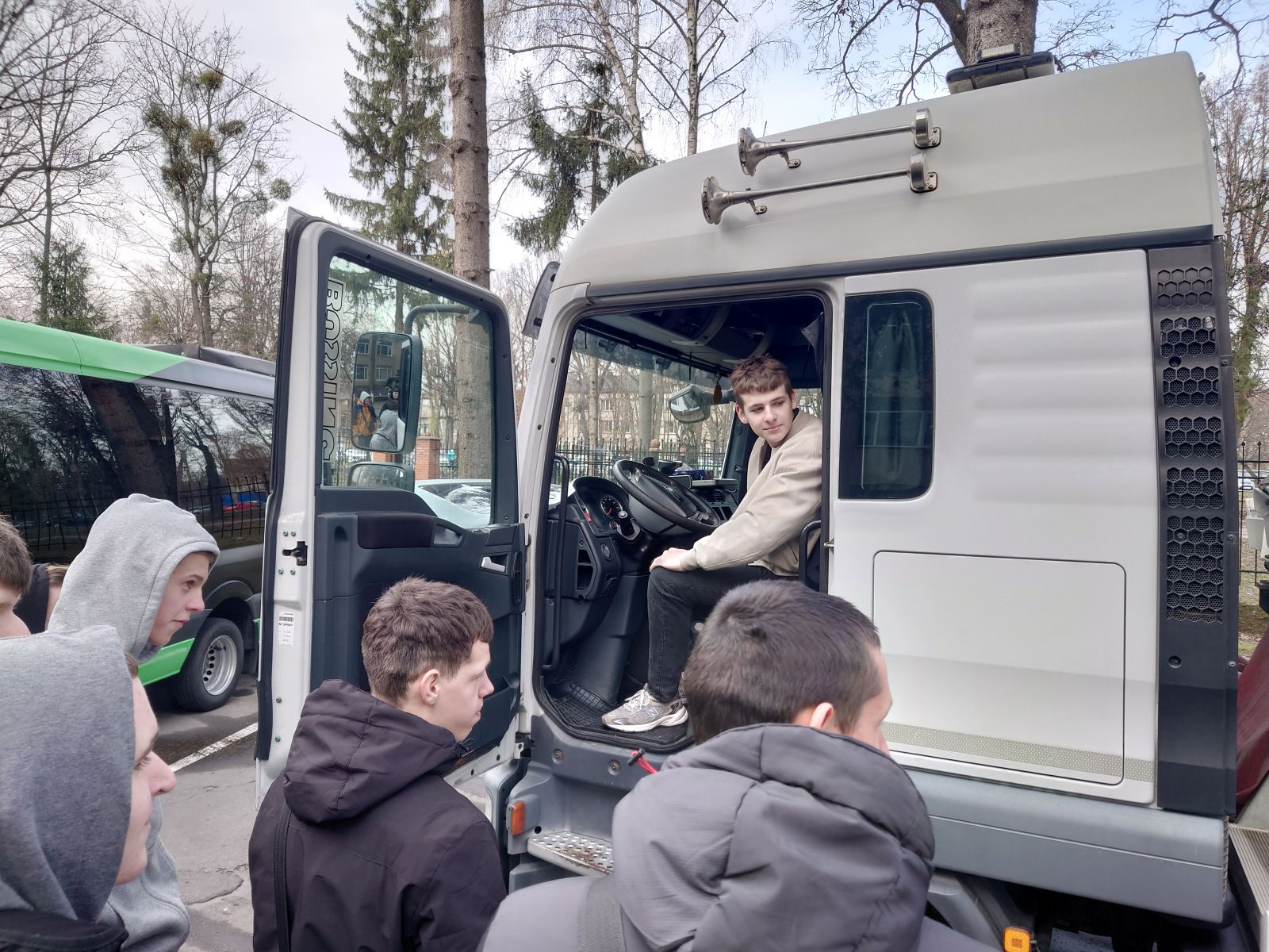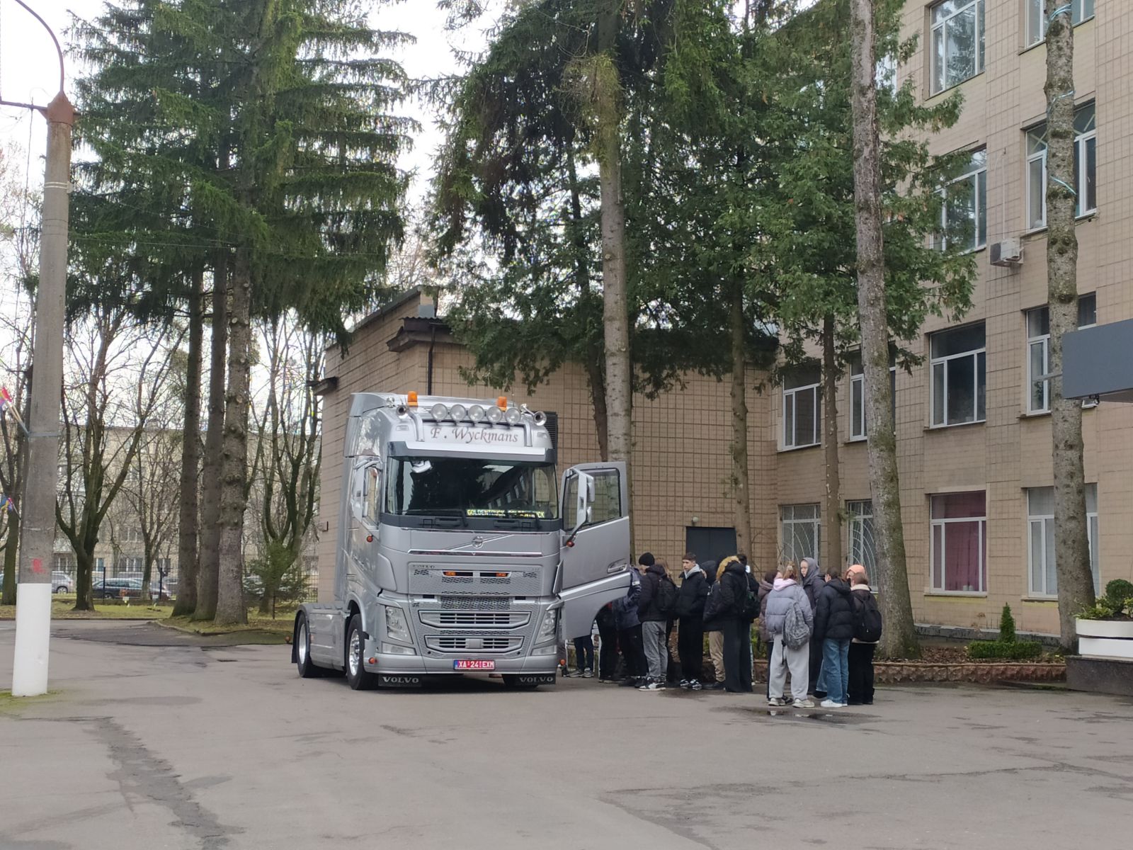 Коли на подвір'ї вишикувались виблискуючі глянцем представниці світового автопрому, біля них зібралися всі, хто був вільний від навчання та роботи! Три пасажирські красені Haval, мікроавтобус Mercedes, лафет для транспортування автівок та вантажівка Volvo перетворились на “симулятори” для ознайомлення студентів зі спеціалізованим рухомим складом.