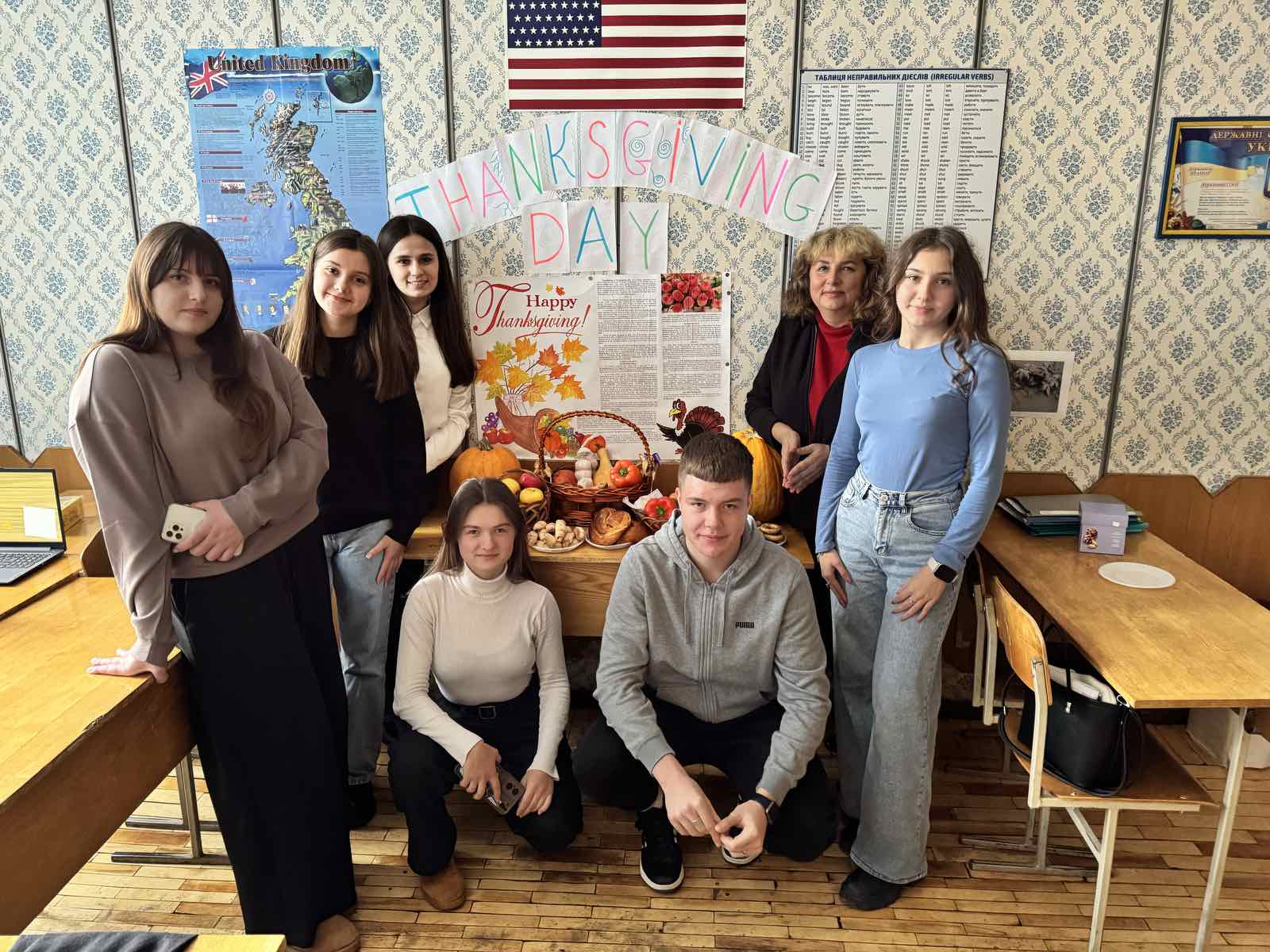 This year's Thanksgiving Day on November 27 was celebrated by the third- and first-year students. A group of 3F with Olena Mozharovska prepared interesting information and competitions for the first courses. Students of groups 1KІ3 and 1M participated in the cognitive and dance battles. Students guessed the words associated with traditional dishes that are prepared for this holiday, demonstrated their awareness of answering questions about Thanksgiving. They thanked in English for all the good things in life, participated in Quiz Time -Thanksgiving Trivia, the verbal relay of Thanksgiving Word Race to test their knowledge of the thematic vocabulary.