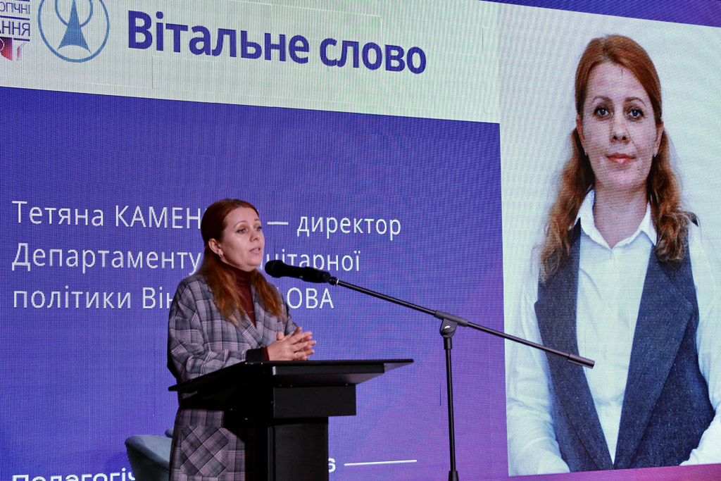 «Я вірю в те, що сильна держава починається з майстерності педагога і тримається на його мудрості й серці. Без сумніву, жодна найсучасніша технологія не здатна замінити живе слово педагога, його віри в студента та його особистого прикладу. Так, ми живемо і працюємо в час стрімких змін. Освітні онлайн-платформи, штучний інтелект, симулятори, віртуальні лабораторії – все це наше з вами сьогодення і частина навчального процесу. Однак технології – це тільки інструмент, якому саме викладач надає сенсу. Для того, аби кожен з нас міг виконати найважливішу з місій педагога, сформувати мисляче, відповідальне та професійне покоління фахівців ми в нашому коледжі тримаємо руку на пульсі новітніх трендів, ідей та освітніх підходів», – зазначила під час своєї доповіді Світлана Василюк, директорка ВТФК.
