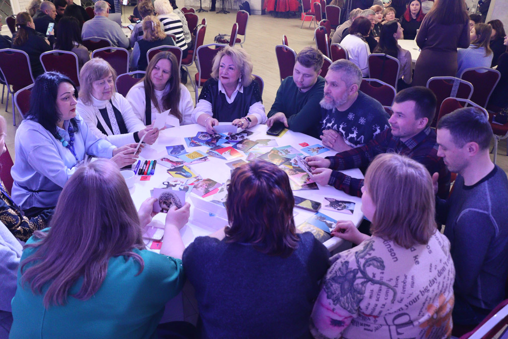 А далі – від теорії до практики. За пʼятьма столами Світового кафе наші викладачі разом з коучами працювали над реальними ситуаціями і кейсами. За червоним група Галини Бурковськоі, магістра психології, психотерапевта і професійного тренера для педагогів, розбиралась в нюансах психологічної безпеки викладача.