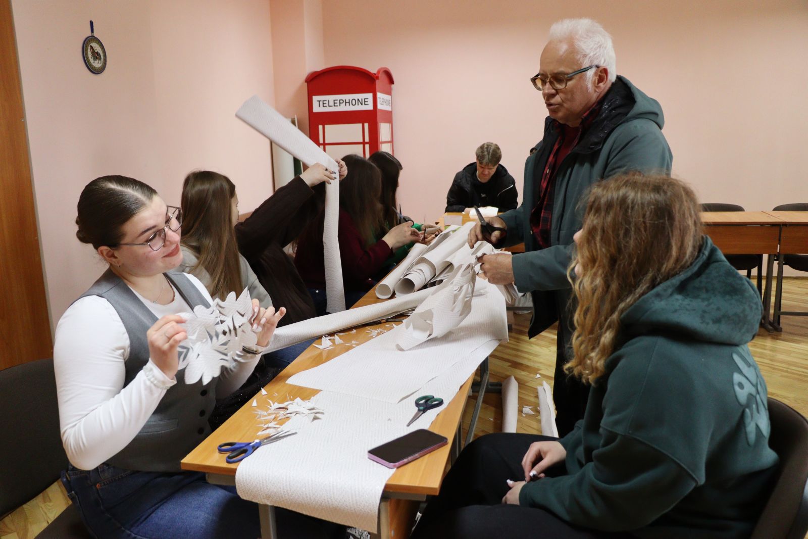 В цей час Наталія Паламарчук, заступниця директора з виховної роботи, Наталя Герелешко, звідувачка мистецьким центром "«StudArt ВТФК» разом з відомим фітодизайнером Олександром Котловим міркували над оздобленням композиції.