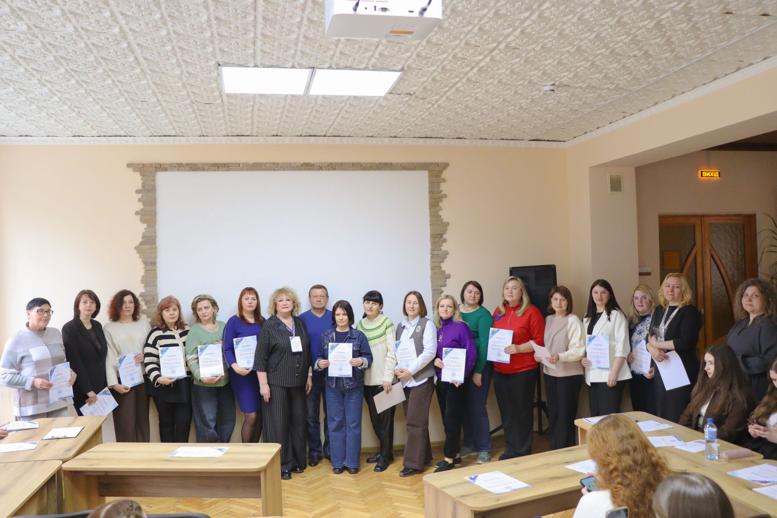 Поки в читальній залі точилася напружена боротьба за бали, паралельно тривала інтелектуальна робота викладачів. Філологи обговорювали сучасні освітні практики, аналізували інструменти розвитку обдарованої молоді та затвердили фахові напрацювання Людмили Тесецької з Калинівського технологічного фахового коледжу.