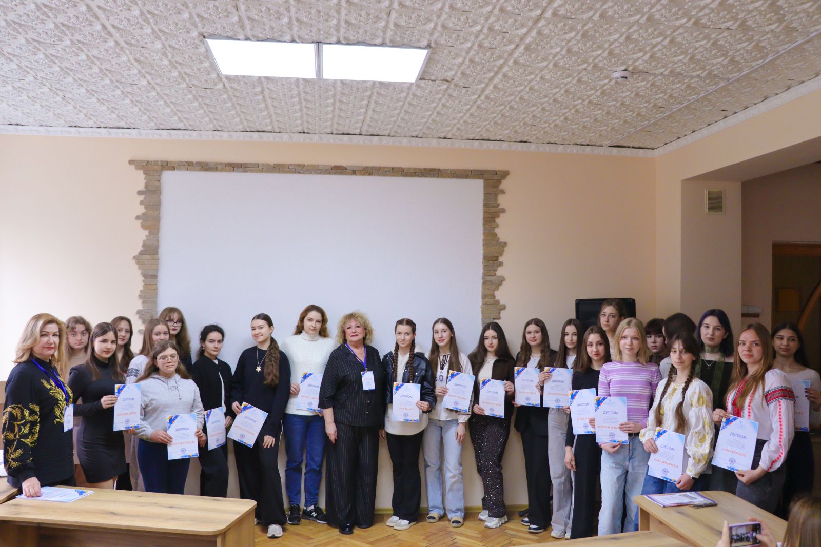 Оголошення результатів зустріли хвилею оплесків. Перемога – за ВТФК! Беззаперечну першість виборола студентка нашого коледжу Софія Будянська, набравши 72 бали із 79 можливих. Особливо показово: таку філологічну точність продемонструвала майбутня представниця ІТ-сфери. До тріумфу її підготувала викладачка Олександра Кучинська.
